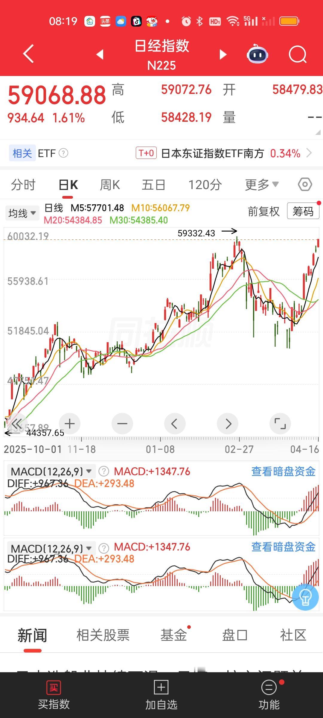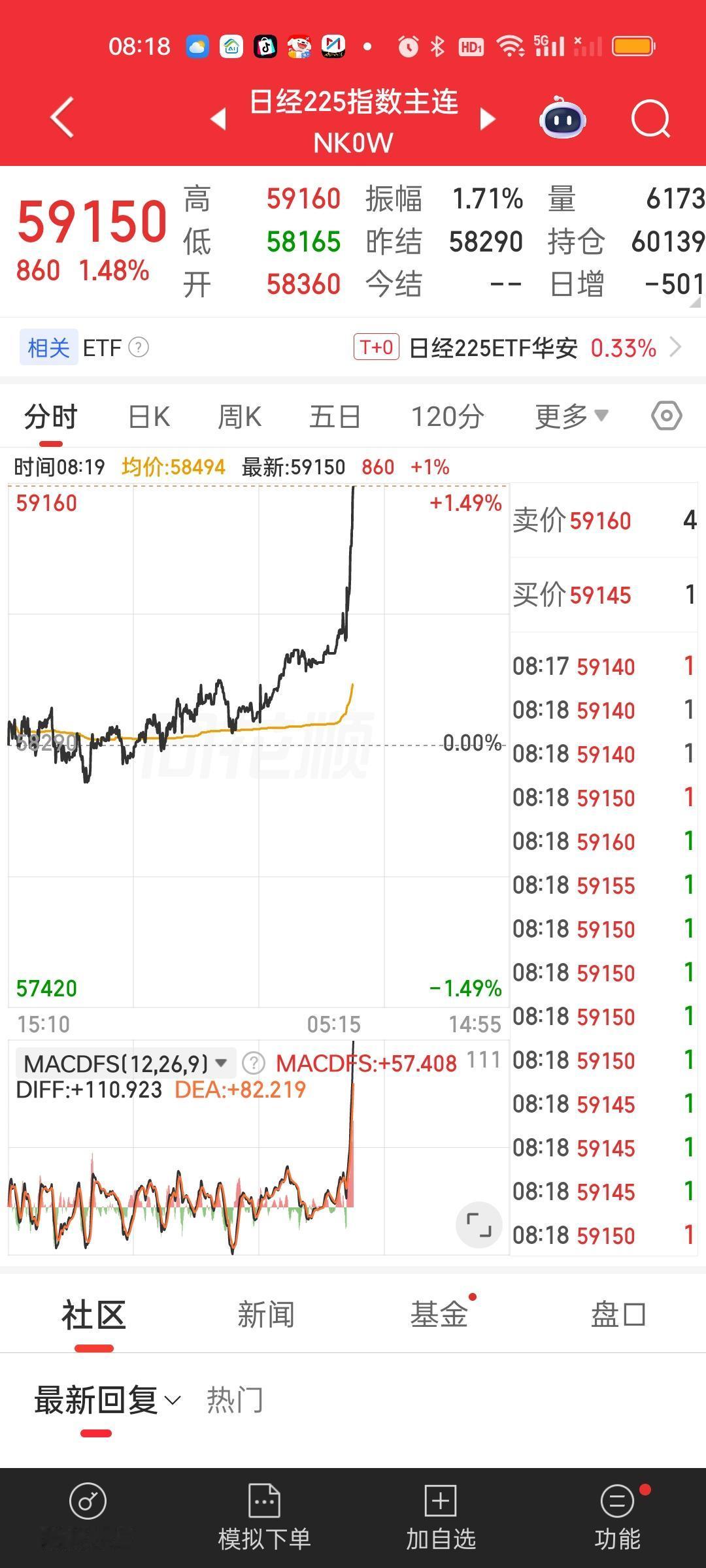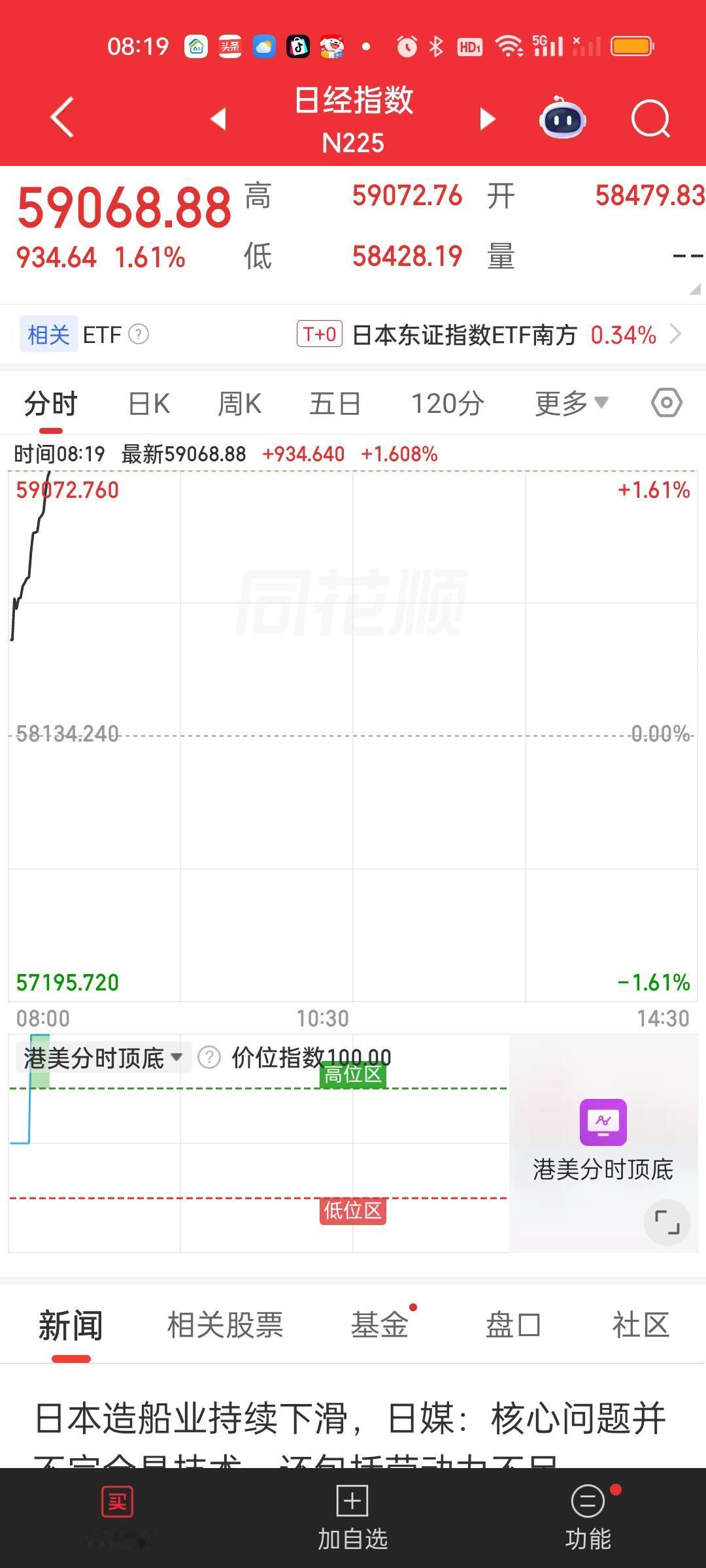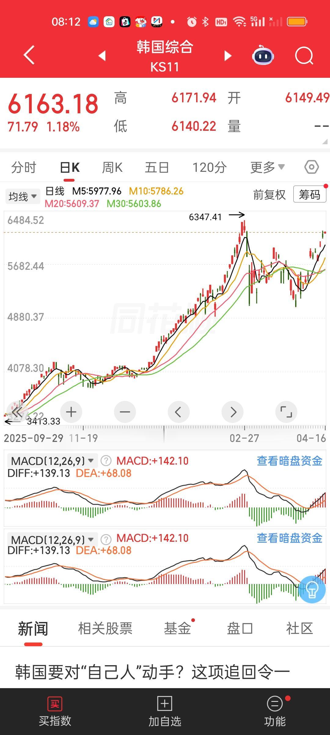 日本股市今天开盘就暴涨,距离前高只有200多点,前高大概率是会破的。韩国股市尽管涨幅不如日本,但距离前高也只有一步之遥。大家都在努力创新高,美股纳指和标普500昨晚已经创了新高。希望我们也能跟上,不要掉队了!