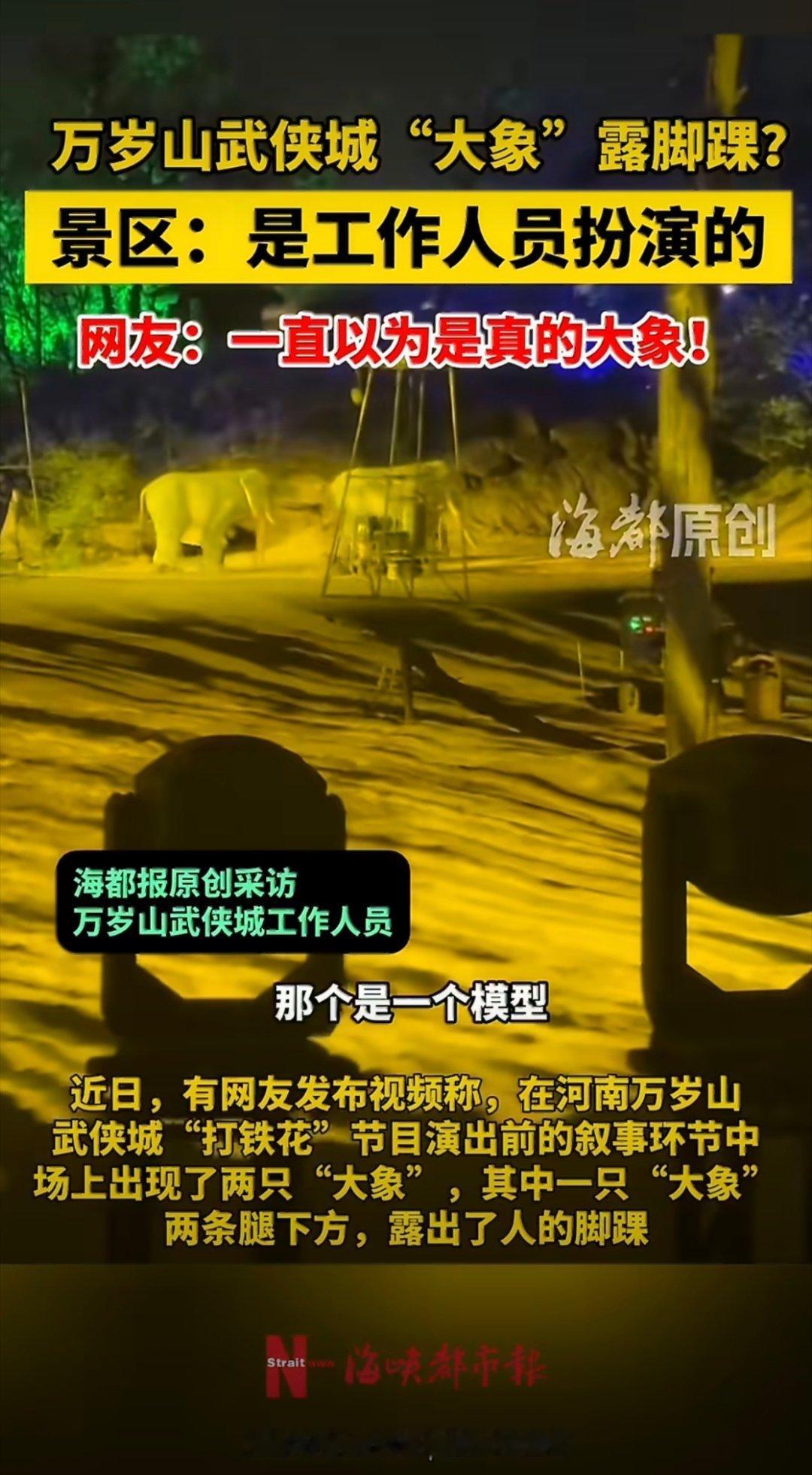 河南一景区露脚踝大象系演员扮演用人力代替动物表演,加了就业岗位还不用折腾动物,挺好的。而且这个模型很逼真啊,这么多人,看这么多场都没看出来是模型