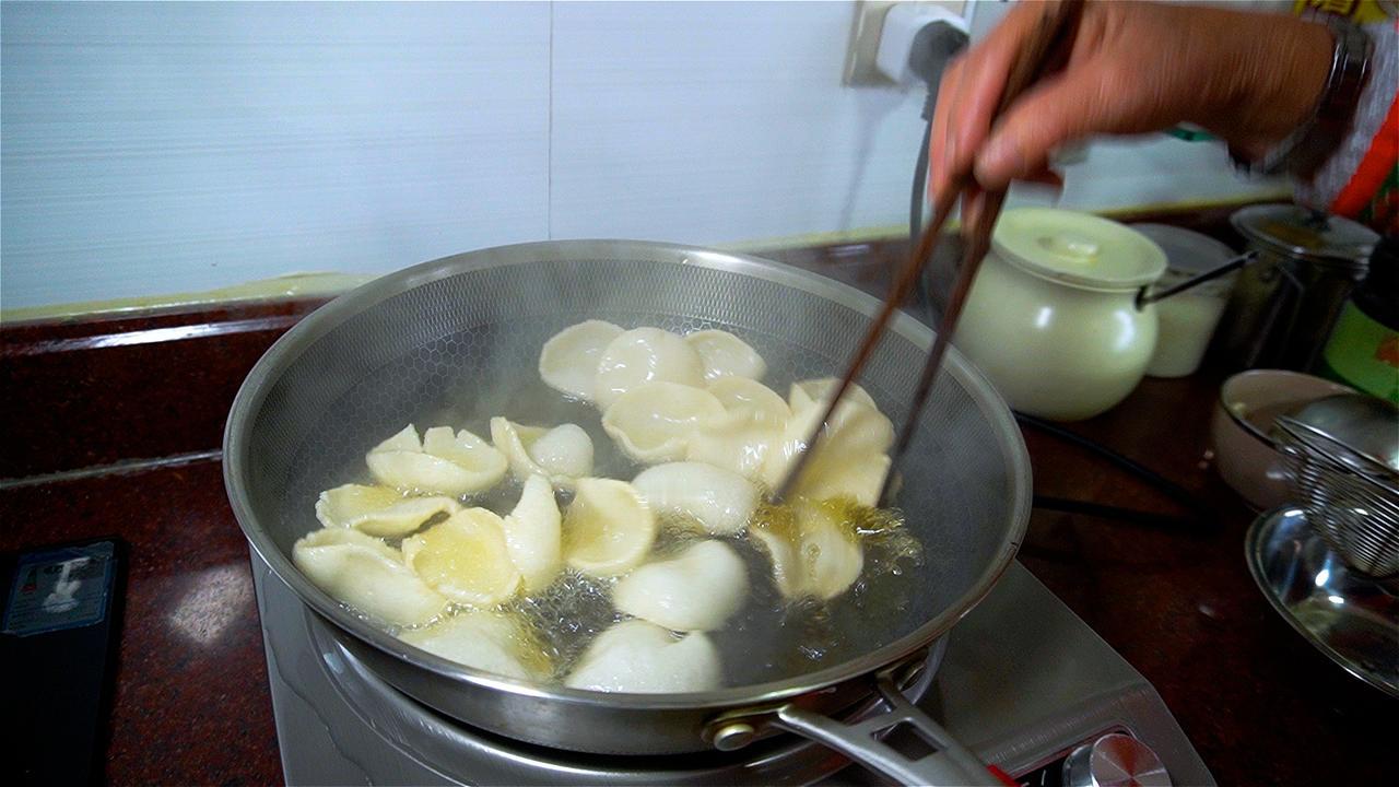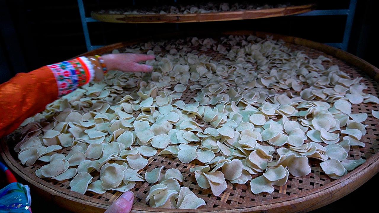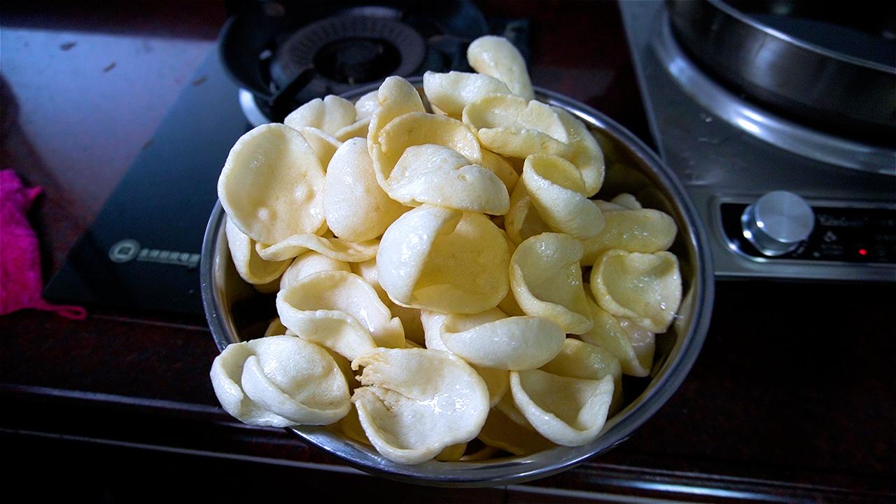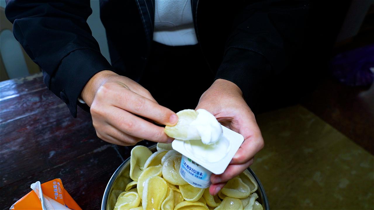 取深海狗母鱼,细致刮出鱼蓉,混合本地淀粉揉成团、搓长条、再切成薄片。不上猛火油炸,而是先耐心烘烤十几个小时,逼出水分,锁住鲜甜。直到入油锅那一刻,薄片瞬间膨胀,像被施了魔法——薯片般的脆响伴着鱼鲜扑鼻而来,咬下去,先是酥脆,随即化开满口清甜。 当地人最懂它的打开方式:不撒调料,只蘸一点冰凉的酸奶。鲜脆裹着奶香,像海风遇见了午后阳光。这道从渔村走出的薄脆,是福建人献给味蕾的别致礼物。春日生活打卡季 乾动力 鱼签 福建崇武特产手工制作鱼薯片休闲膨化零食 含鱼肉40%
