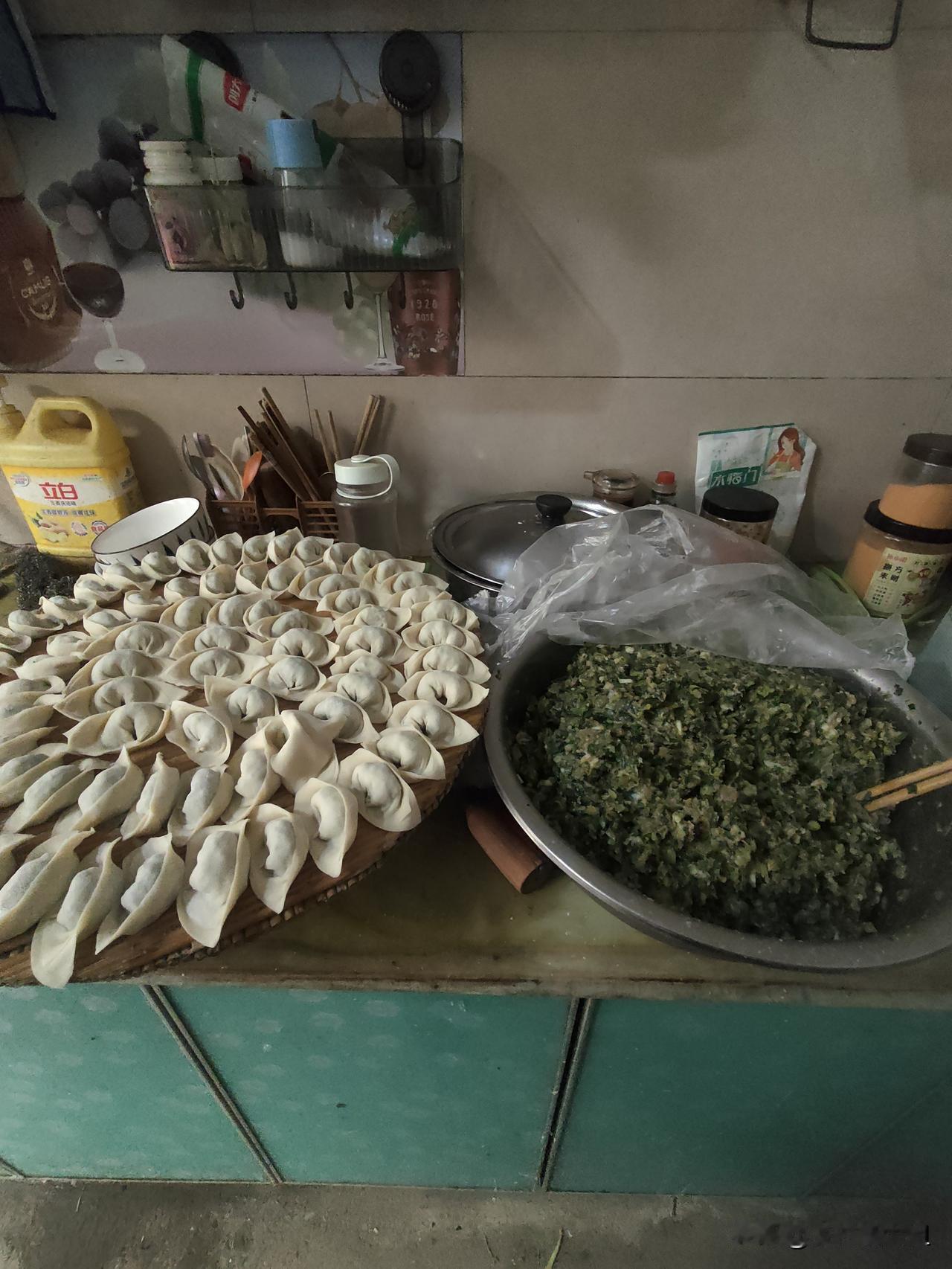 蔬菜吃不完我就这样做 今天中午我又包饺子吃,前两天剁了一大盆饺馅过2月2吃的,今天初三,再吃一顿,就把它包起来放冰箱了, 天气转暖,蒜苗正吃,马上又要老了,冬季萝卜。也快不能吃了,趁着还新鲜,萝卜,蒜苗,猪肉掺在一起剁饺馅, 一下子剁了一大盆,把蒜苗和萝卜尽快用上,等老了不能吃了,辛苦种的浪费多可惜, 饺馅剁好先吃几顿,再把它包起来放冰箱里,什么时候想吃,再拿出来包饺子吃,这样蒜苗和萝卜就不会浪费了。萝卜馅肉饺子