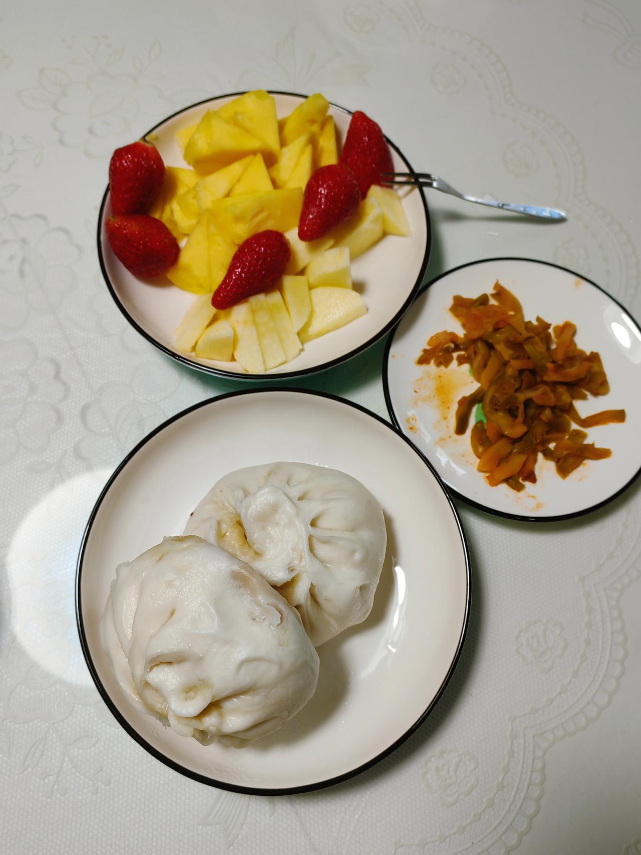 说实话,我早上都不知道吃什么,每天都是老样子。不过也省心了! 我老公跟我不一样,他要是做点什么,非得提前想好。比如明天早上吃啥,他晚上就得琢磨。 我不,一般都是早上起来,看啥有啥吃啥。两个娃基本天天馄饨,今天青菜鲜虾馄饨,明天西红柿鸡蛋馄饨,反正汤汤水水居多。 我们俩呢?要么面包配牛奶,要么剩饭炒个蛋炒饭,要么从单位打几个包子回去。再配点水果咸菜,基本就这样了。 今天早上,两娃照例吃馄饨。我们吃炒米饭,还有单位打的包子,配上点菠萝、苹果、草莓。 老公说:“怎么才这么点草莓?”我说草莓不适合早上吃,不够甜还带点酸,就随便洗了几个。 早上适合吃的水果,我觉得苹果、蓝莓都不错,现在的凤梨、菠萝也行。 今天是老公送孩子,我就不用着急忙慌了。走的时候,他还拿了包子,说中午吃。[捂脸][捂脸] 我说那都凉了,吃了肚子疼,他说我别管。得,抠门劲儿犯了。 七点半他们一走,我打开音乐,又打开窗户给屋里换了换空气。 然后开始收拾,洗洗碗,擦擦桌子,拿除尘纸随便划了下地,被子叠好,鞋子摆好。 卫生间的灯没关,我给关了。最后把所有窗户都关上,只留着卫生间和厨房的窗往上开。 天气预报说今天下午有雨,还是关着点吧。7点50分,我穿好鞋,拎着电脑下楼。 一出单元门,看见那个被别人家车占着的车位,我忽然想起之前跟老公说:“要不装个车桩吧,省得自己交着车位费,倒让别人用上了。”[捂脸][捂脸] 老公说:“算了吧,还得打眼。停就停了,估计也是单元楼里的人。等我们买了车就能用上了。” 得,车位就那样空着,随便别人停。 真是“车位有了,却没有车”。然后脑子里不知怎么又蹦出一句:“牙膏有了,但没有牙。”[捂脸][捂脸] 是啊,人老了,有牙膏没牙,还能吃个啥?想着想着自己笑了。 往小区门口走去,路边长满了小紫花,花架上还攀爬着串串紫花。多好的春色啊! 今天又是美好的一天。[玫瑰][玫瑰]