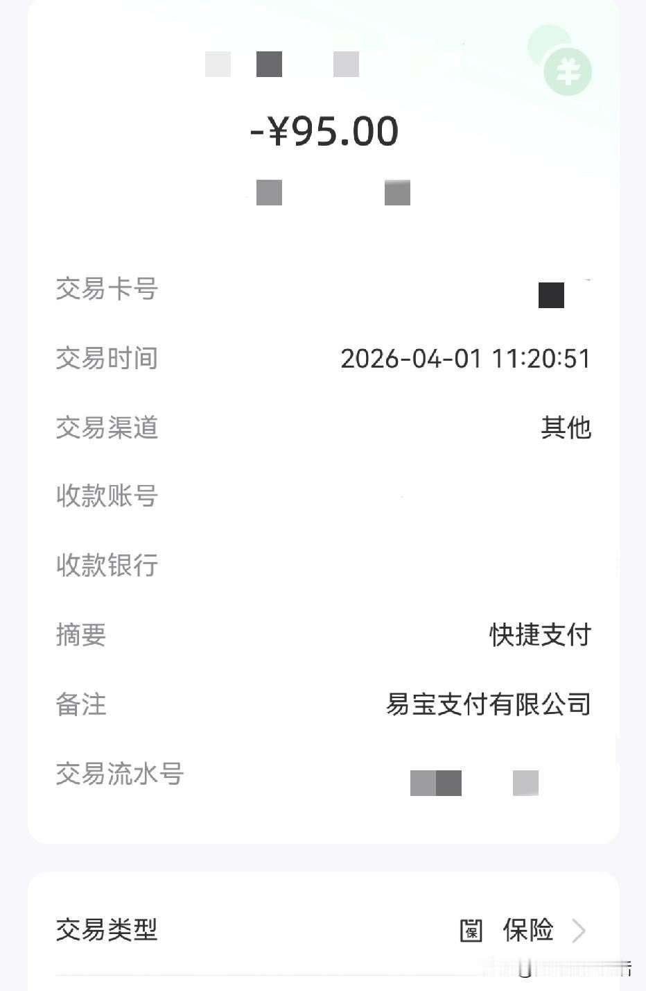 天杀的元X简直是网络强盗!爱刷短视频的朋友们都快查查自己的账单吧,千万不要有和我一样莫名其妙的扣费发生,毕竟大家挣钱都不容易。 今天的太阳特别大,我下午没出门在家里收拾干家务。 因为我4月份有一份保险需要缴纳保费,我就点进银行APP查看一下扣费没有。 结果我却发现除了那个本该扣费的保险以外,还有一个叫啥元X的保险公司扣了我95块钱。 我赶紧截图发给妹妹,问是否和他们保险公司有关?妹妹说没有,那个是我看短视频的时候无意间点进去了,它们就把钱扣了,然后会每个月按时扣费。 这简直是明晃晃的抢劫啊!虽然说一个人只有95块钱不是太多,但它一天抢1千个1万个人呢?那得是一笔多么庞大的数目! 问题我在不知道的情况下就购买了保险,那个保险是干啥的也不了解。如果我不查询银行账单看见了它的存在,它会每个月都要扣我的钱。 妹妹安慰我不要着急,我是4月1号被扣的费。有15天到20天的犹豫期,犹豫期内是可以全额退款的,她这两天空了就来帮我弄。 我在千问上问这个元X是不是一个诈骗公司?千问说不是的,他们的公司是合法注册的,但是他们的保险让很多消费者感觉被坑了,遭到了大量的投诉。 最后我又搜索了如何退保,千问告诉我可以在公众号上退,也可以打他们的客服电话退。 我就在公众号上把那个劳什子保险找客服给退了,退的过程中还一连问了我三四次确定要放弃保障吗? 那是干啥的保险我都没有了解清楚,能有啥保障呀?没一会儿我被扣掉的95块钱就回来了。 这个保险公司简直太不讲武德了!我都不知道它是怎么让我购买的保险。像这样的保险公司迟早只有倒闭玩完的份! 你做生意无可厚非,但是至少得你情我愿呀!这纯粹的就是欺骗诈骗!压根在消费者不清楚的情况下就让人家完成了投保算怎么回事? 号召全网封杀它带着坑的广告,要不然不知道还有多少人会上当受骗。特别是那些经常刷视频又不怎么懂这些的老年人,被莫名其妙扣了钱都不知道。
