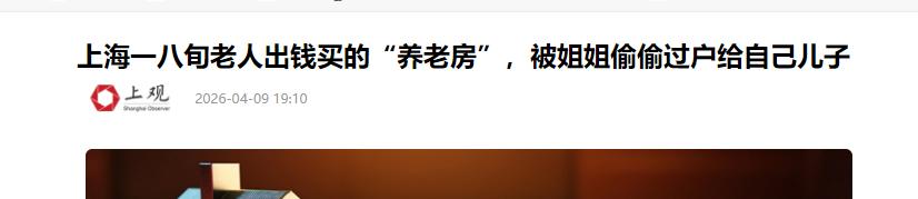 “洗房失败!”上海,一8旬阿婆,花90多万买套房,接姐姐过来一起养老,万万没想到,8年后,姐姐竟然背着她,偷偷把房子过户给自己儿子,姐姐去世后,阿婆被外甥赶出房子,无家可归,阿婆愤怒的把外甥告上法庭,法院判决外甥败诉,赔偿阿婆90多万,可不可思议的一幕发生了。 2026年4月的一大早,上海杨浦区一个老旧小区里,突然呼啦啦来了几十个法院的人。80多岁的姚阿婆就站在人群中间,眼瞅着那扇关了整整10年的家门,被慢慢推开了。 折腾了这么久,这老太太总算把属于自己的那块“方寸之地”给盼回来了。 说起这事,还得从十多年前说起。那时候姚阿婆掏出了一辈子的积蓄,整整90万现金,在杨浦买下了这套房。她当时想得挺美,打算跟亲姐姐住一块,老姐妹俩互相有个照应,晚年也不至于太孤单。 就因为太相信这份亲情,觉得大家都是一家人,她当时做了一个让自己后悔半辈子的决定,姚阿婆竟然直接把房产证写了姐姐的名字。 在阿婆心里,自家的血缘关系可比房产证上那个名字靠谱多了。她在屋里累死累活伺候生病的姐姐整整十年,可她压根没往法律那方面想。 在不动产登记系统里,人家姐姐才是这套房子的真正主人,想怎么处置都行。结果趁着姐姐病重,外甥偷摸搞了一份赠与合同,愣是把房产过户到了自己名下。这一套操作下来,出钱买房的姚阿婆被彻底蒙在了鼓里,资产被转得干干净净。 姐姐一走,外甥立马变脸,拿着房产证就来赶人,非要让亲姨妈搬出去。直到被撵出门的那一刻,姚阿婆才如梦初醒,原来在利益面前,信任早就崩塌了。 姚阿婆最后能打赢这场官司,全靠她当年留存的那一丝理智。虽然房产证上没写名,但她把当年的原始转账记录留得死死的,手里还有一份两姐妹签的字据。 这些证据就是铁证,明明白白地告诉法官,这房子到底是谁出钱买的。法院的判决也是干脆利落,一点没含糊。 外甥明明知道房子是姨妈买的,还想通过“获赠”来白捡便宜,这叫非法占有。这种行为完全不符合法律规定,想钻“善意取得”的空子,门都没有。 法院最后判决,让外甥把相关的钱款全都还给阿婆。可这外甥是个“铁公鸡”,就是不执行判决,甚至把房子转租给别人,想方设法跟法律躲猫猫。 他以为去申请个“再审”就能拖延时间,赖着不腾房子。哪知道法律硬得很,申请归申请,法院该执行还是得执行,由不得你耍赖。 于是,这就有了开头那惊心动魄的一幕。法院直接动了真格,用硬手段终结了这场长达十年的拉锯战,正义总算落了地。 这起案子真的给所有人提了个醒。很多人总觉得一家人谈钱伤感情,可现实往往是,不谈钱才真的伤感情。要是没有法律这个硬框框约束,你的好心很可能变成风险极高的“投资”。 最靠谱的保障从来不是什么口头承诺,则是白纸黑字的合同和清清楚楚的产权。姚阿婆回到了自己的房子,可当年的那份亲情,再也找不回来了。 希望大家安排晚年生活时,都能让善良带点“锋芒”。只有把利益的边界划清楚了,亲情才能在干净的土壤里长得长久。 信息来源:《上海一八旬老人出钱买的“养老房”,被姐姐偷偷过户给自己儿子》,上观新闻,2026年4月9日。