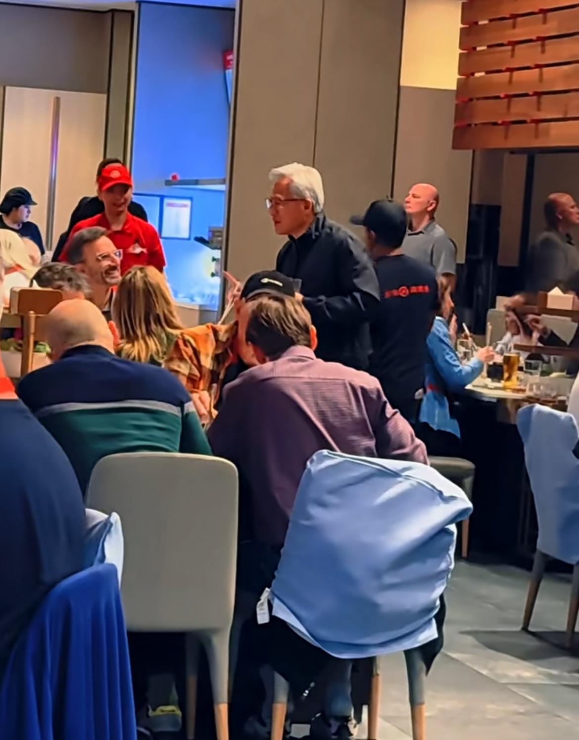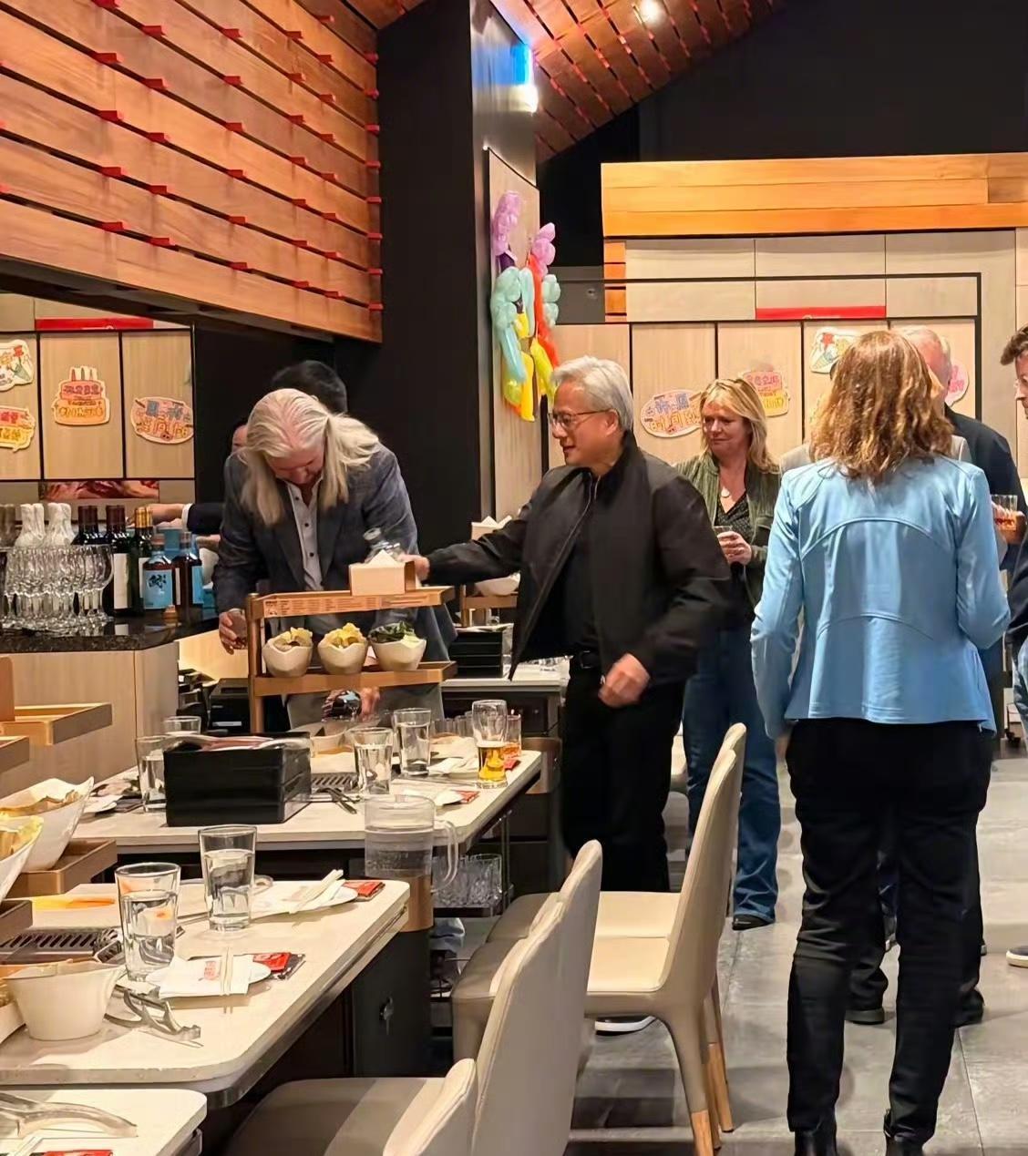 黄仁勋带高管吃海底捞 近日,英伟达CEO黄仁勋带领高管在硅谷海底捞用餐。 照片中看得出老黄是吃高兴了,不时站起来与同事聊天交流。 隔壁桌同事:吃海底捞本来就是传播中华文化料理的一种方式,虽然老黄赴美生活超过50年,但是胃依旧还是喜欢中餐。(年前来中国一路“吃”就是最好的例证[大笑])