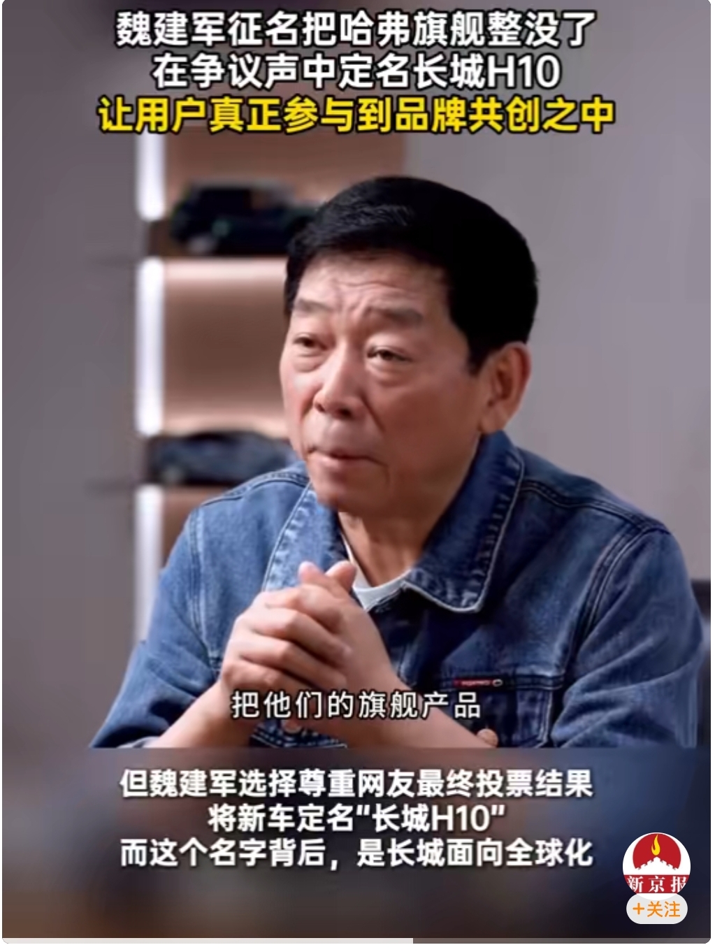也只有长城敢这么玩,之前老魏全网征名的哈弗旗舰SUV投票结果出来了,叫做: 长城H10, 关键是哈弗两个字没有了,长城这么放飞自我吗?是不是有点太随意了? 大家怎么看?