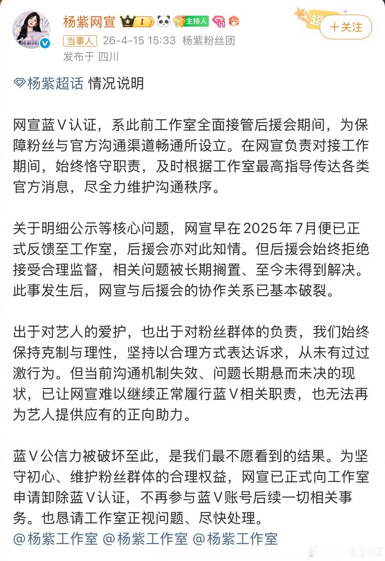 杨紫后援会集体辞职解散重组 杨紫后援会否认关注迪丽热巴超话