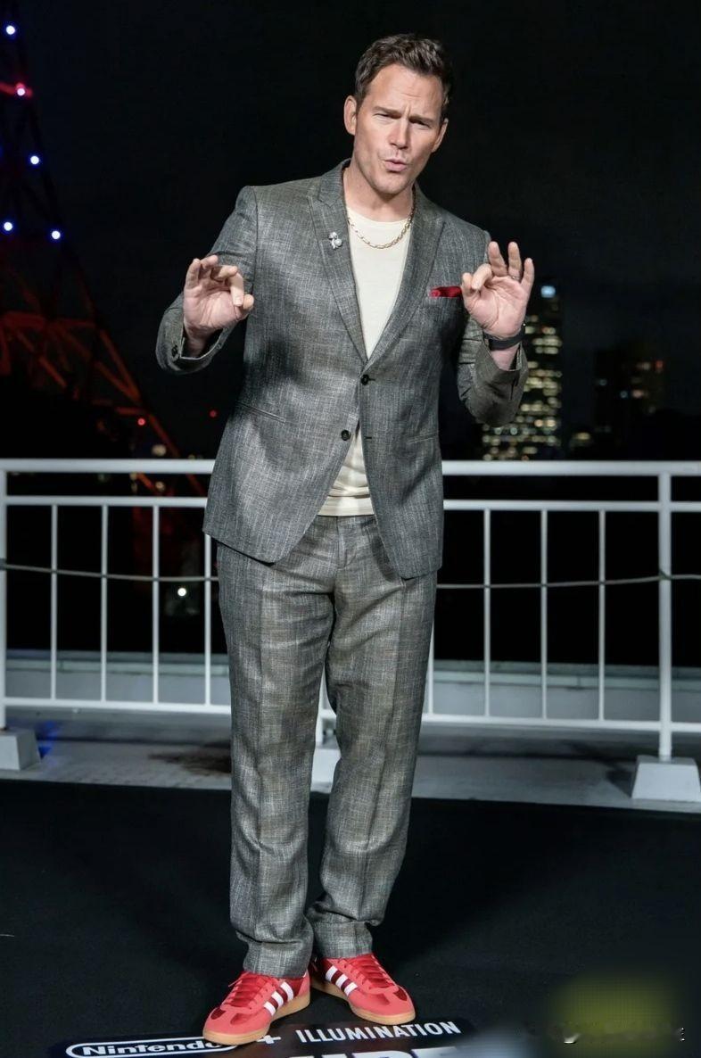 Chris pratt在东京的这身穿搭真的很难评,愣是把一个身高188的大高个穿出了165的即视感。裤腿偏宽松且堆在鞋面上,加上面料垂感一般,显得下半身有点拖沓,拉低了整体利落感,再加上T恤没扎进裤子里,就有点五五身的感觉。穿搭 男士穿搭
