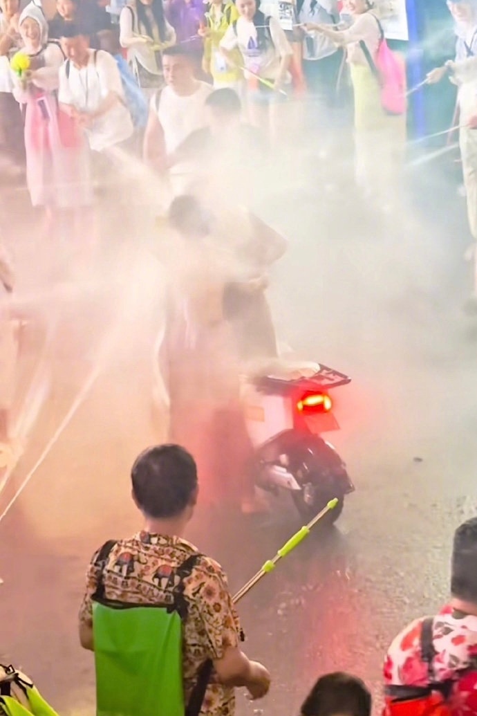 这样的泼水节已经变味了!云南泼水节,一辆辽A的白色新能源车路过,前一秒大家还只是