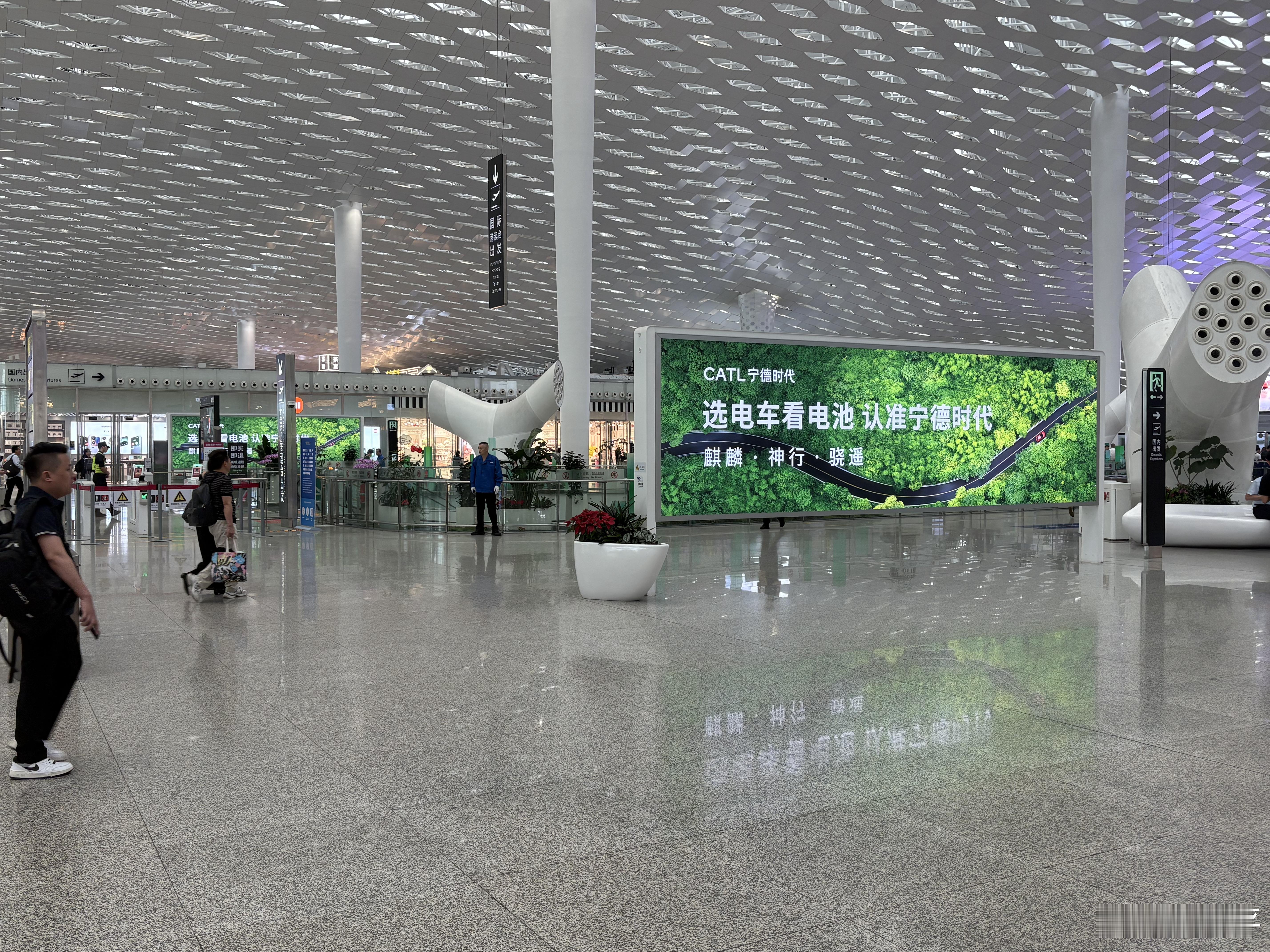 宁德时代这是在宝安T3摆了多少块广告牌,都可以当做各个区域的背景墙使用了。新能源汽车