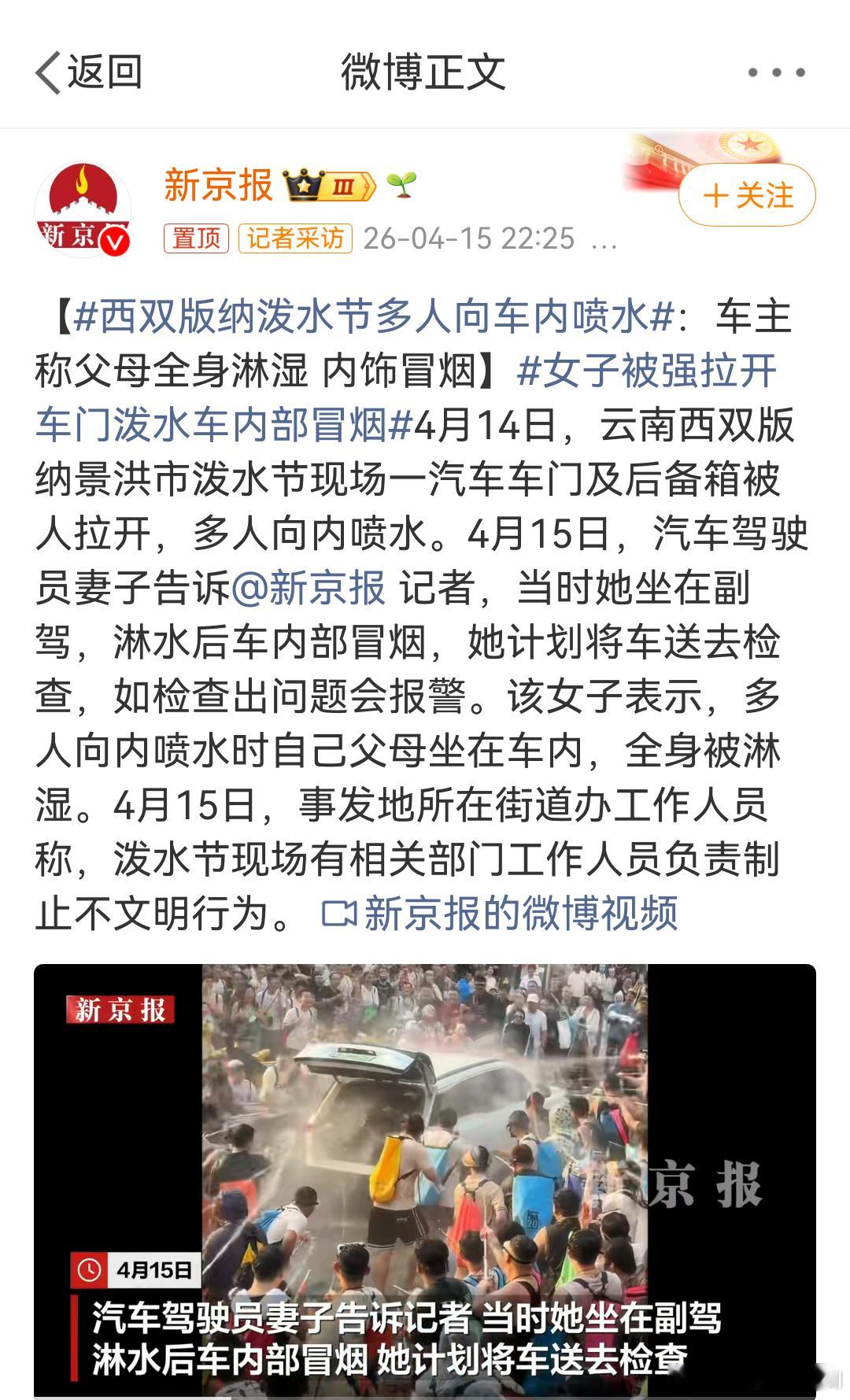 女子被强拉开车门泼水车内部冒烟 等等,外面泼水热闹一下就算了,后备箱里这么泼水进去,有点过了吧???