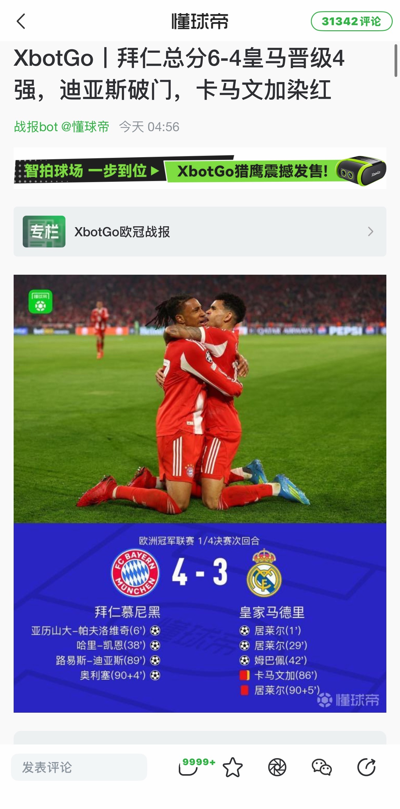 今年欧冠拜仁应该有希望了吧拜仁4比3皇马