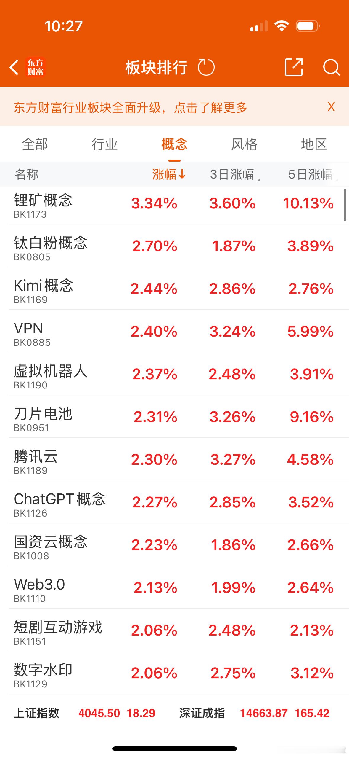 轮动!电风扇轮动!昨天涨幅榜领涨的医药,电网直接跌幅榜领跌;而昨天跌幅榜领跌的锂电池,今天涨幅榜领涨。这种电风扇轮动成色太差了,涨跌幅榜隔日切换,资量化主导,资金没有持续性,猫一天狗一天,频繁的制造波动,拉升砸盘,砸盘拉升。除了锂电池,今天涨幅榜活跃的有机器人,算力,AI应用等方向,就开盘来看,电风扇轮动的一天。