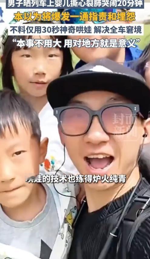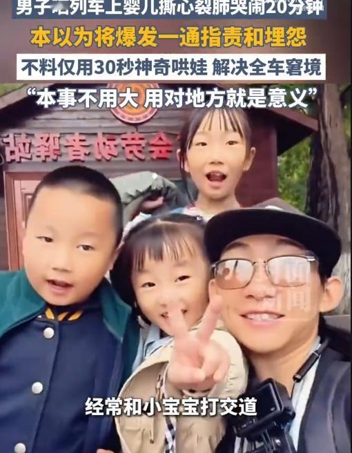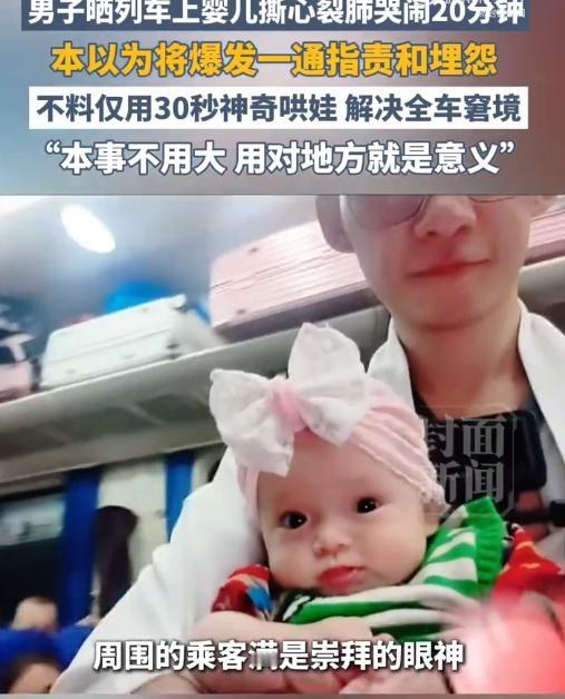 神了!高铁上娃哭到整车厢坐不住,20分钟没人敢吱声,他一出手,30秒就让娃笑出声——这波操作,全车人都看呆了! 就在近日的高铁上,小宝宝哭得撕心裂肺,家长急得直跺脚,周围乘客也跟着揪心。这时,一位男乘客主动上前,捏捏小脸、换换抱姿,没等大家反应过来,娃的哭声就变成了咿呀笑,前后不过半分钟。 原来他是名儿童摄影师,天天跟娃打交道,哄娃技能早就刻在骨子里。他说:“本事不用大,能帮上忙就值。”这话太戳人了——哪有那么多“超人”?不过是有人把日常练就的本事,用在了最需要的地方。 你看,出门在外谁没遇过急事儿?有人冷眼旁观,有人悄悄搭把手。就像这位男士,没多复杂的动作,却解了全家的围,暖了一车厢的心。这种“刚好我会,刚好你需要”的默契,不就是生活里最动人的光吗? 要是你在现场,会给这位“哄娃大神”点啥?评论区聊聊,顺手转发让更多人看见这份温暖~ 婴儿哭闹20分钟男乘客30秒哄好 这一刻他就是全车厢的神 生活中的小温暖 信息来源:封面新闻。 图片来源:封面新闻,如有侵权,请联系删除。
