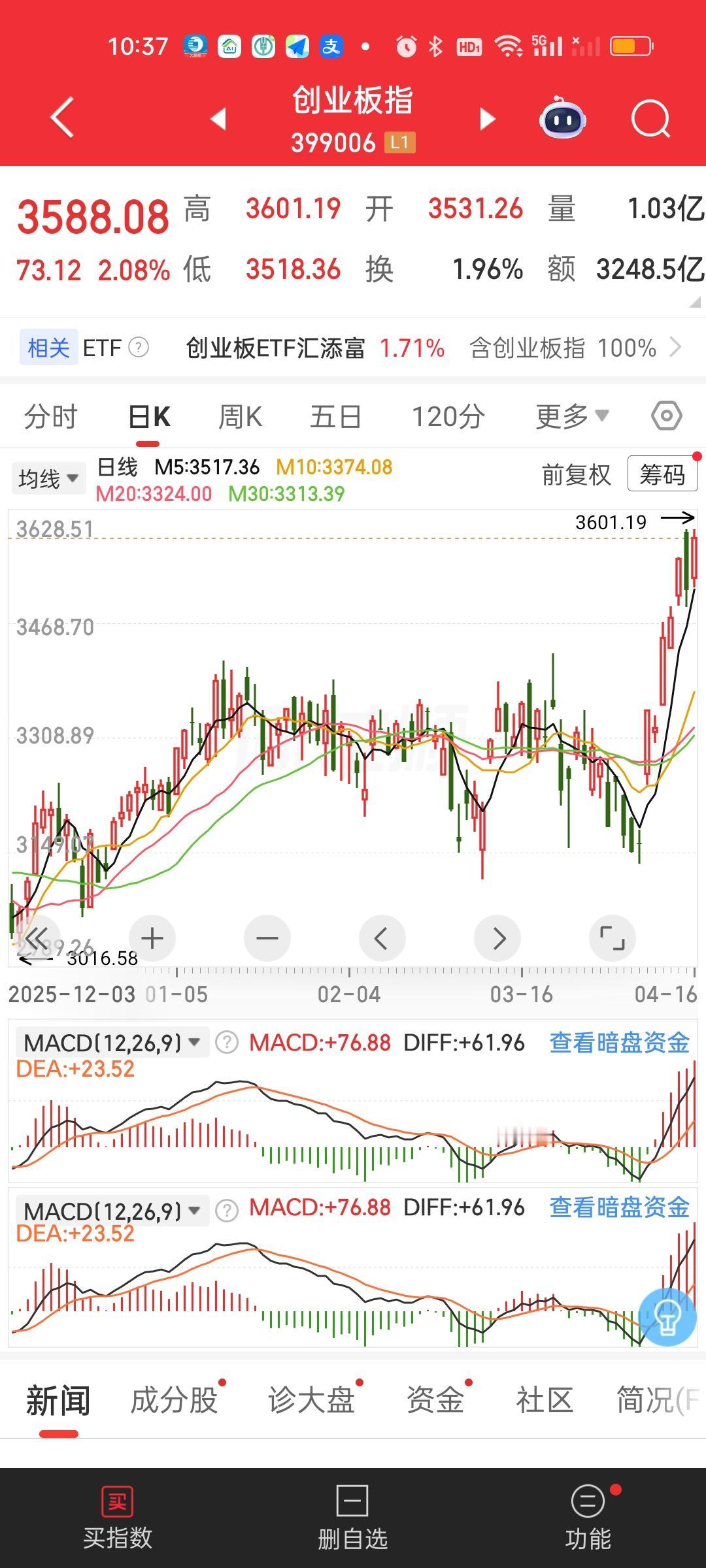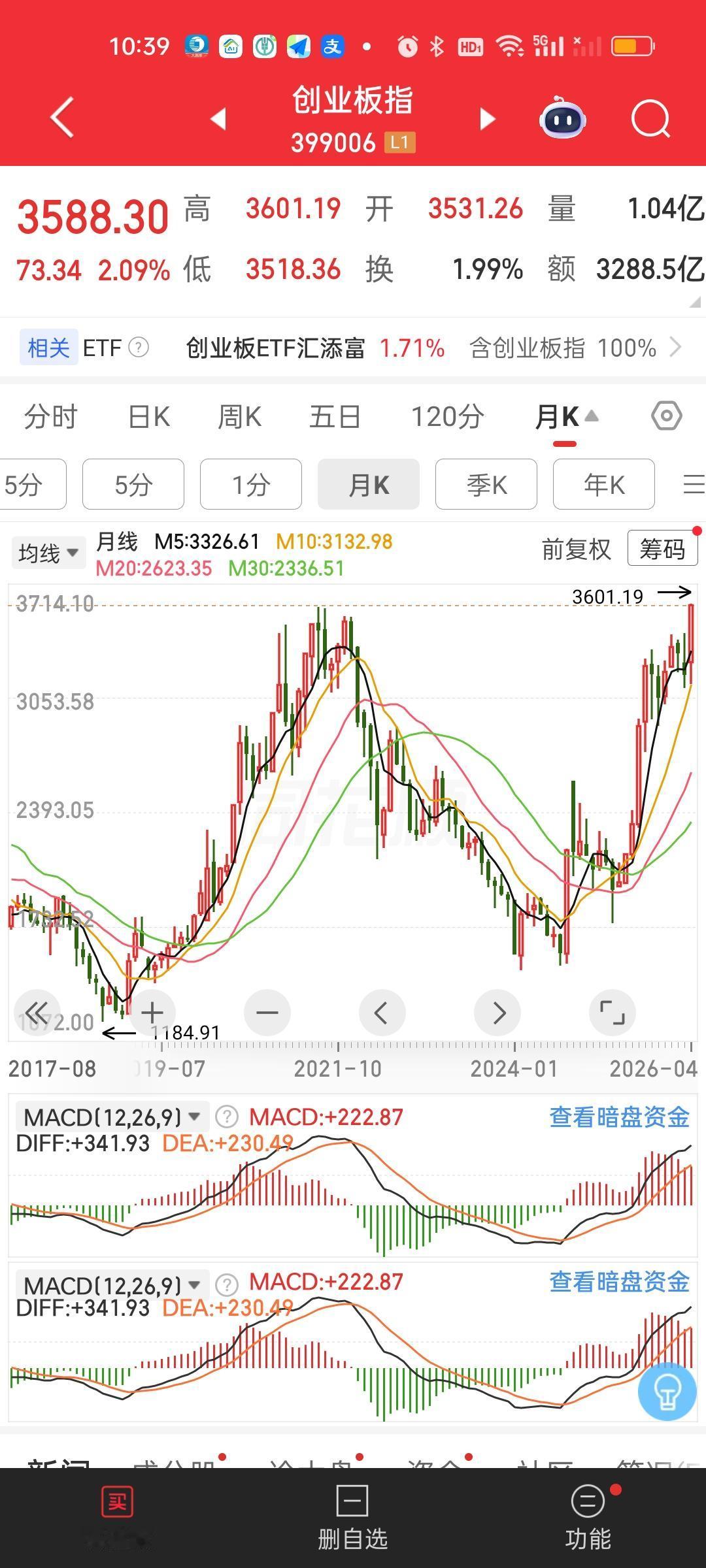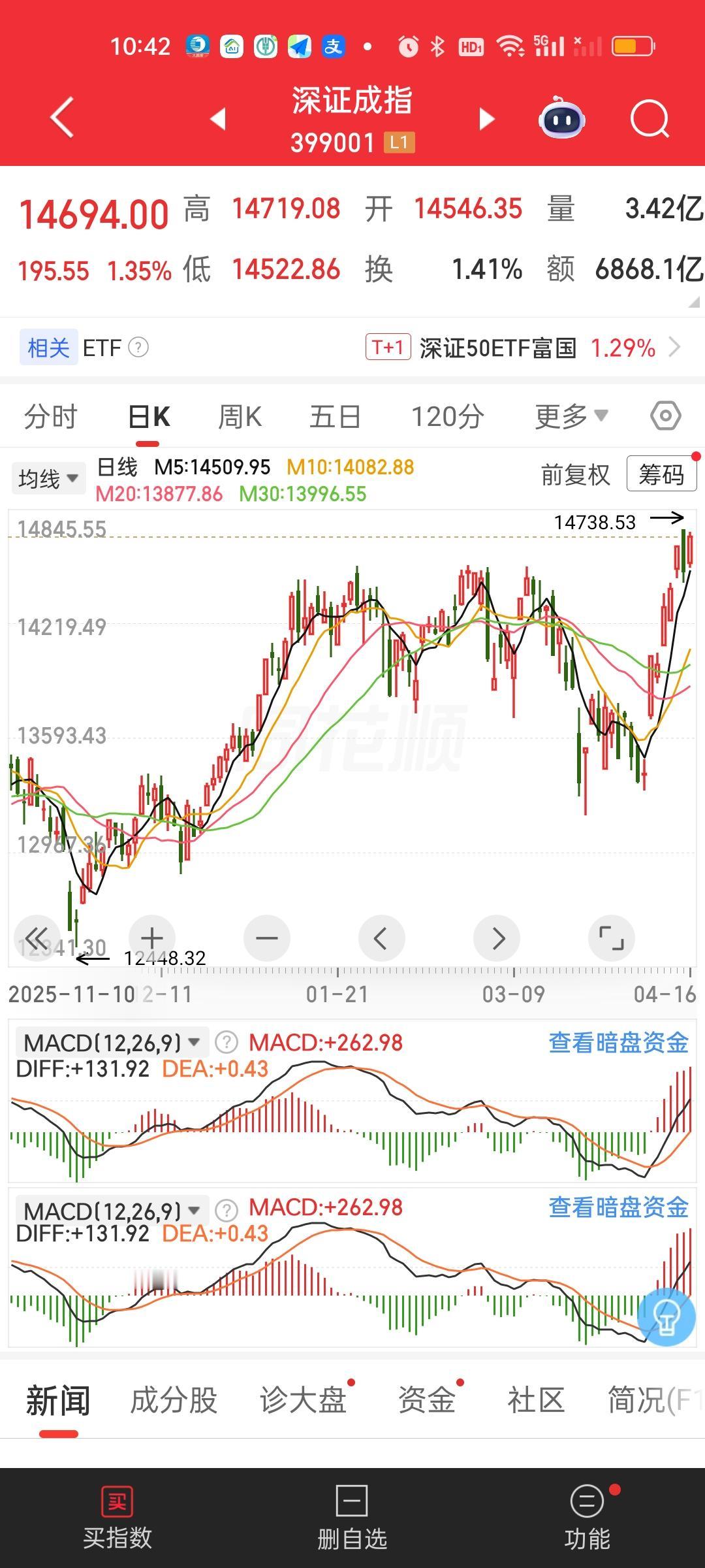 今天全球市场都在破新高,我们也绝对不能落后,要跟上国际形势啊!这不话音未落我们的创业板指就创出10年多来的新高了。当然距离历史新高还有一段距离。另外深证成指也在悄悄发力,距离近5年新高就差19个点了,今天大概率也能跑出来。不管怎么样创出新高就好,不能被外面给比下去了,面子是一点要争的,打死不能让别人笑话我们羸弱。