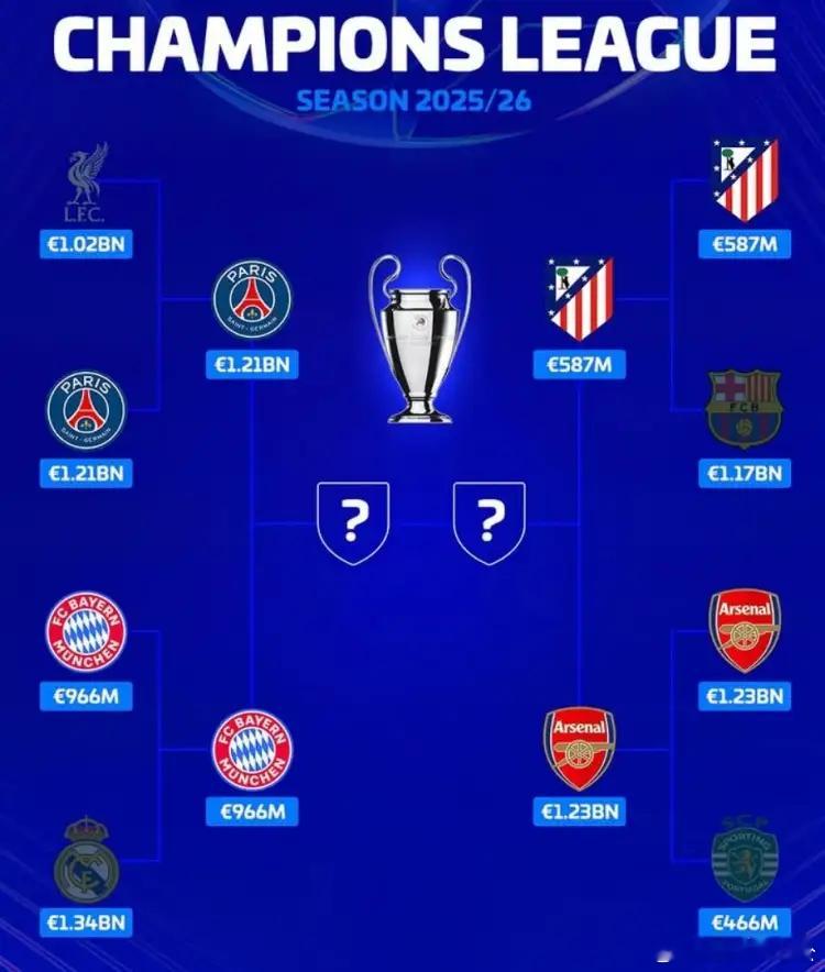 欧冠4强:英法德西各一队,意甲淘汰赛首轮便全军覆没,巴黎对阵拜仁巴黎双杀利物浦、拜仁淘汰皇马、马竞艰难晋级、阿森纳险胜葡萄牙体育,欧冠四强全部诞生,分别是法甲榜首巴黎、德甲榜首拜仁、西甲第四马竞、英超榜首阿森纳。欧冠半决赛对阵:巴黎vs拜仁,马竞vs阿森纳!四强联赛分布均匀,法德西英各占一队,意甲彻底缺席,意大利连续三届无缘世界杯,足坛竞争力大幅下滑。意甲球队在淘汰赛首轮就全部出局,欧冠赛场毫无话语权。球队身价:巴黎12.1亿欧、拜仁9.66亿欧、马竞5.87亿欧、阿森纳12.3亿欧。今年欧冠冠军你看好谁?卫冕冠军巴黎,还是火力全开的拜仁?近三届两度新王加冕,马竞阿森纳能否创造奇迹?欧冠是俱乐部最高荣誉,拿下欧冠才是豪门认证,无缘大耳朵杯难称欧洲顶级豪门。皇马两大球星场上吵架