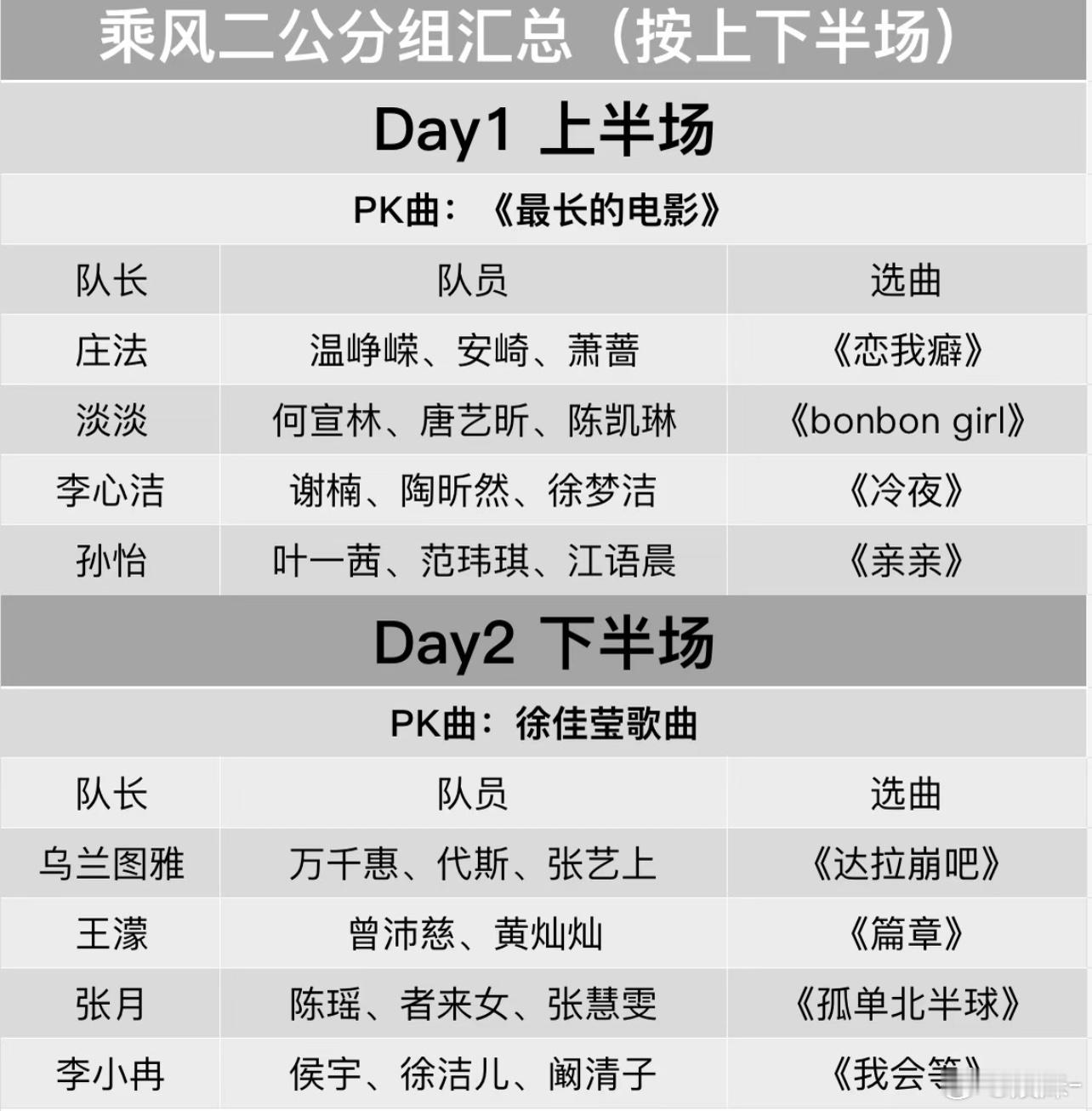 浪姐二公出场顺序,这阵容下半场拉完了😂