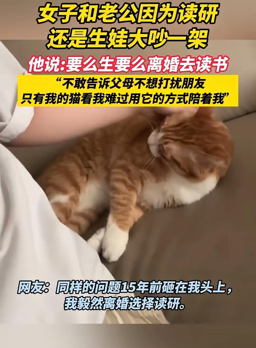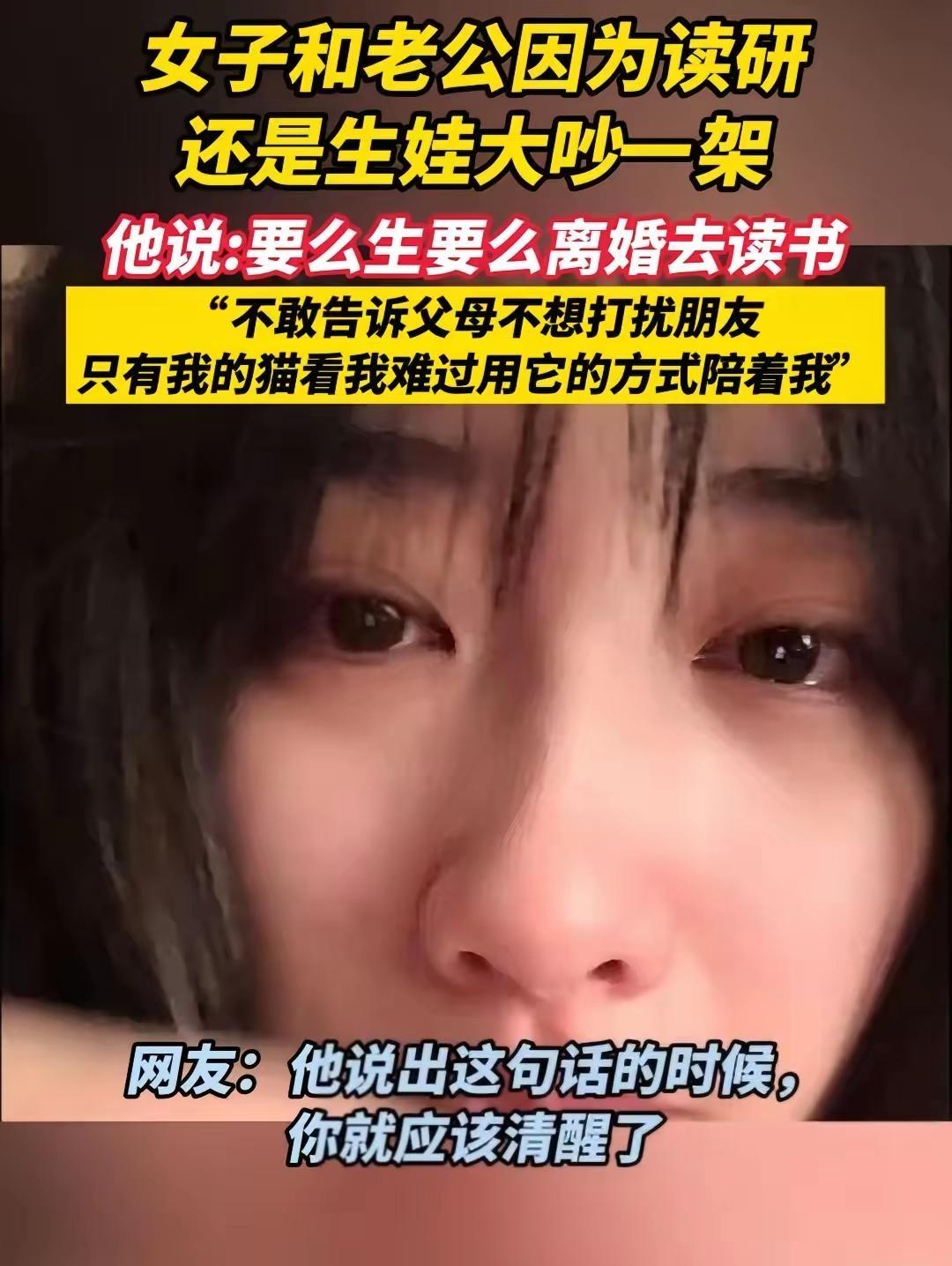 女子和老公因为读研还是生娃彻底撕破脸 丈夫冷酷放话:要么乖乖生孩子,要么离婚去读你的书 结婚不是卖身,读研不是罪过,凭什么要被一句要么生,要么离婚拿捏? 他要的不是妻子,是听话的生育工具。 26岁怎么了?想提升自己、想拥有选择权,就是不顾家? 婚姻最恶心的地方,就是把女性的人生,强行压缩成生孩子+做家务。 不敢告诉父母,不想打扰朋友,连崩溃都要偷偷摸摸——这不是婚姻,是精神软禁。 猫都知道心疼你,枕边人却只算利弊。 别自我PUA,你的人生不是用来满足他传宗接代的。 到底是结婚过日子,还是找个人让自己被强制生育? 这样只讲利弊、不问心意的婚姻,你真的愿意将就一辈子吗?
