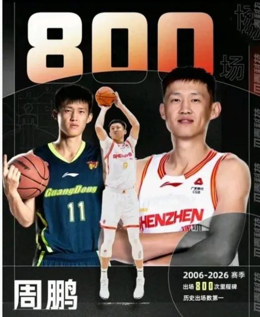 不知不觉,周鹏已经在CBA打了20年,800场也成为CBA里程碑,可敬可贺。 初入CBA身体单薄,却能认真防守对手外援,对手主力,防守位置覆盖面广,一下子就成为广东队主力战将,也深得当时主教练李春江喜欢。 球技每年增长,一步一个脚印,防守悍将也是得分能手,这是周鹏的全面能力。 在广东队十多年,球队经历过辉煌也经历过低谷,周鹏都是跟队友共进退,勤勤恳恳任劳任怨。 当球队更换新人,周鹏都是言传身教,给后辈们鼓舞,是他们的榜样。 来到深圳,周鹏重拾心气,用八枚冠军戒指的经验指导新的队友,在新的环境跟他们奔向更高目标。这不,深圳队已经十四连胜了,排名目前在广东队之上,这就是周鹏的作用。 周鹏,一个了不起的球员,从小将到老将,人生辉煌,无人可比。 周鹏有遗憾,没能一人一城,这也是广东球迷的遗憾,不过深圳也是在广东,希望带领深圳队打出好成绩。 周鹏,老当益壮,再打五年没有问题。