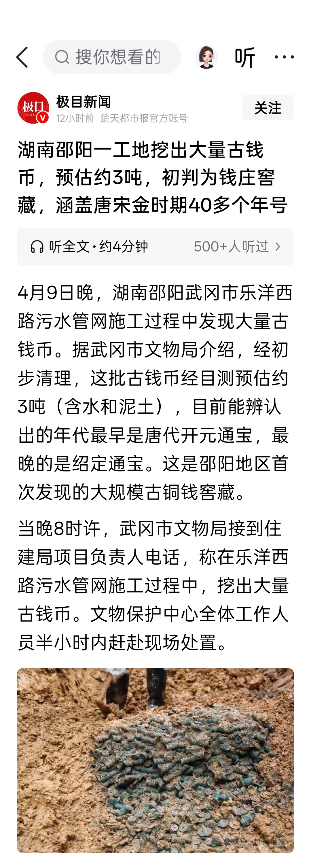 湖南邵阳一工地挖出大量古钱币,预估约3吨,初判为钱庄窖藏,涵盖唐宋金时期40多个年号。这是挖到古代的金库了