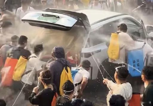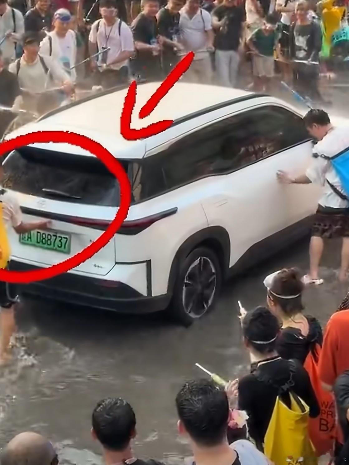 女子被强拉开车门泼水车内部冒烟泼水节遭拉开车门车主或将追责