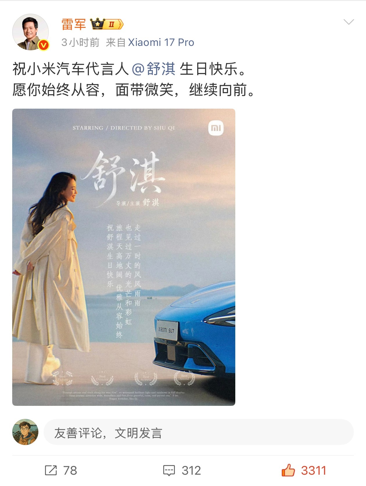 舒淇这个代言请的还真不错,谐音梗是一个;整体给人的感觉也非常舒服、自然,能给品牌带来向往感的~