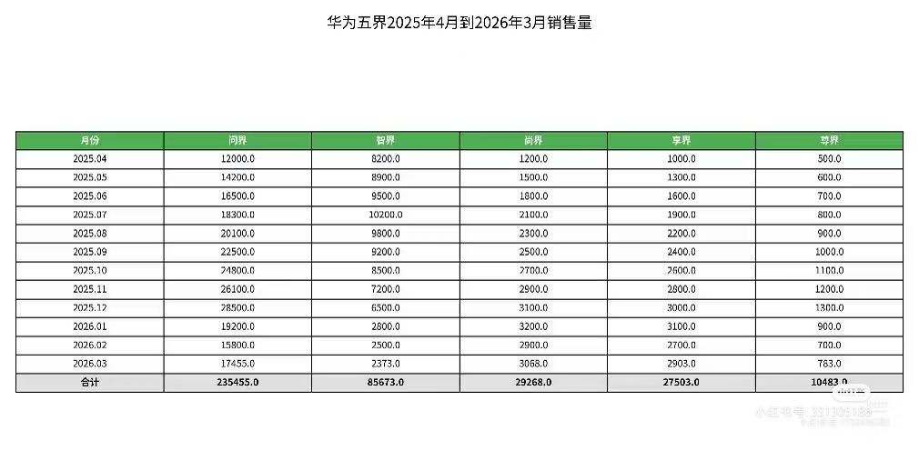 网上的近一年五界销量,享界倒二,差距不到十万的车,自封高端,高端至少过50万,入门豪华版智界都到了,这辈子是不准备代言50万,100万以上的车了吗?现在就高端了哈哈