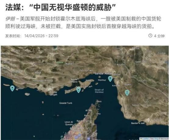 法媒表示,毫无疑问,中国无视了华盛顿的威胁!在中国油轮“富星”号通过霍尔木兹海峡之后,4月15日,法新社刊文表示,美国军舰开始封锁霍尔木兹海峡后,一艘被美国制裁的中国货轮顺利驶过海峡,未被拦截,这是美国实施封锁后首艘穿越海峡的货船。 “无视”这个词,你品。 法新社是西方主流媒体,不是中国官媒,它用“中国无视华盛顿威胁”来定性这件事,本身就够讽刺了——连盟友的媒体都承认:美国的脸,被打得啪啪响。 4月13日晚上10点,特朗普高调宣布封锁霍尔木兹海峡,15艘美军舰艇摆出架势,宙斯盾驱逐舰、侦察机、无人机全面上阵,阵仗大得吓人。 结果第二天,一艘叫“富星号”的中资油轮,载着25万桶甲醇、配备中国船员,大摇大摆从阿联酋出发,穿过霍尔木兹海峡,往中国开去。 全程畅通无阻,美军舰艇就在旁边看着,连拦都没拦一下,更别说登临检查了。 可能有人会说,是不是“富星号”没被美国盯上?恰恰相反,这艘船所属的公司,2023年就因为和伊朗有贸易往来,被美国财政部列入了制裁名单,是美国重点盯防的目标。 更有意思的是,“富星号”还不是莽莽撞撞硬闯的。航运数据显示,它13号晚上第一次试图驶出波斯湾,在凯什姆岛附近掉头折返,明显是在试探美军的底线。 看到美军没任何动静,它才放心大胆地再度出发,大摇大摆地穿过了美军的封锁线,把特朗普的狠话当成了耳旁风。 美军脸上挂不住,赶紧发声明找补,说封锁只针对进出伊朗港口的船只,“富星号”从阿联酋出发,不涉及伊朗港口,所以不在拦截范围。 这话纯属自欺欺人,简直是搬起石头砸自己的脚。美国制裁“富星号”所属公司,理由就是它跟伊朗有贸易往来,现在却因为它这次没去伊朗,就睁一只眼闭一只眼,逻辑根本说不通。 说白了,美军就是不敢拦,找了个借口给自己台阶下。它心里比谁都清楚,一旦拦截中国油轮,就是中美直接摊牌,这个后果,特朗普政府根本兜不住。 伊朗那边可没惯着美国,直接补刀补到心巴上。伊朗驻外使馆集体发力,用表情包、短文案嘲讽特朗普的“全面封锁”,说这种封锁,只适用于美国不忌惮的国家。 翻译过来就是:你美国也就敢欺负软的,碰到硬茬,连拦都不敢拦,所谓的封锁,不过是自导自演的闹剧。 更讽刺的是,国际海事组织秘书长直接表态,根据国际法,任何国家都无权封锁国际海峡,美国的封锁本身就是违法的。 美国本来想通过封锁霍尔木兹海峡,向伊朗极限施压,逼伊朗在谈判桌上让步,结果呢?不仅没困住伊朗,反而让自己陷入了孤立和尴尬。 要知道,中国每天从伊朗进口大量原油,一家就买走了伊朗出口原油的80%以上,中美之间的经贸联系和战略博弈,决定了美国根本不敢轻易招惹中国。 “富星号”的顺利通过,根本不是偶然,而是一次教科书级别的压力测试。中国用一艘船的航迹,清清楚楚地告诉美国:你的威胁,对中国不好使;霍尔木兹海峡的通行权,不是你说了算。 中国外交部也第一时间发声,批评美国加码军事部署、实施封锁,只会激化矛盾,破坏地区和平稳定,这既是表态,也是底气。 反观美国,一边放狠话要全面封锁,一边不敢拦截中国油轮;一边说有国家帮忙,一边连一个盟友都拉不来,纯属打肿脸充胖子。 其实大家都看得明白,美国的封锁就是纸老虎,看似来势汹汹,实则外强中干。它不敢真的切断全球能源通道,更不敢真的和中国摊牌,所谓的封锁,不过是用来刷存在感、施压伊朗的工具。 而“富星号”的穿越,就是给美国的一记响亮耳光,也让全世界看清了一个事实:中国早已不是当年那个任人拿捏的国家,现在的中国,有足够的实力和底气,维护自己的合法权益,无视任何不合理的威胁。 美国如果还看不清形势,继续在霍尔木兹海峡搞事,继续放狠话威胁中国,只会一次次被打脸,只会越来越孤立。 毕竟,实力才是硬道理,嘴硬没用,阵仗摆得再大也没用,能实实在在护住自己的利益,才是真本事。
