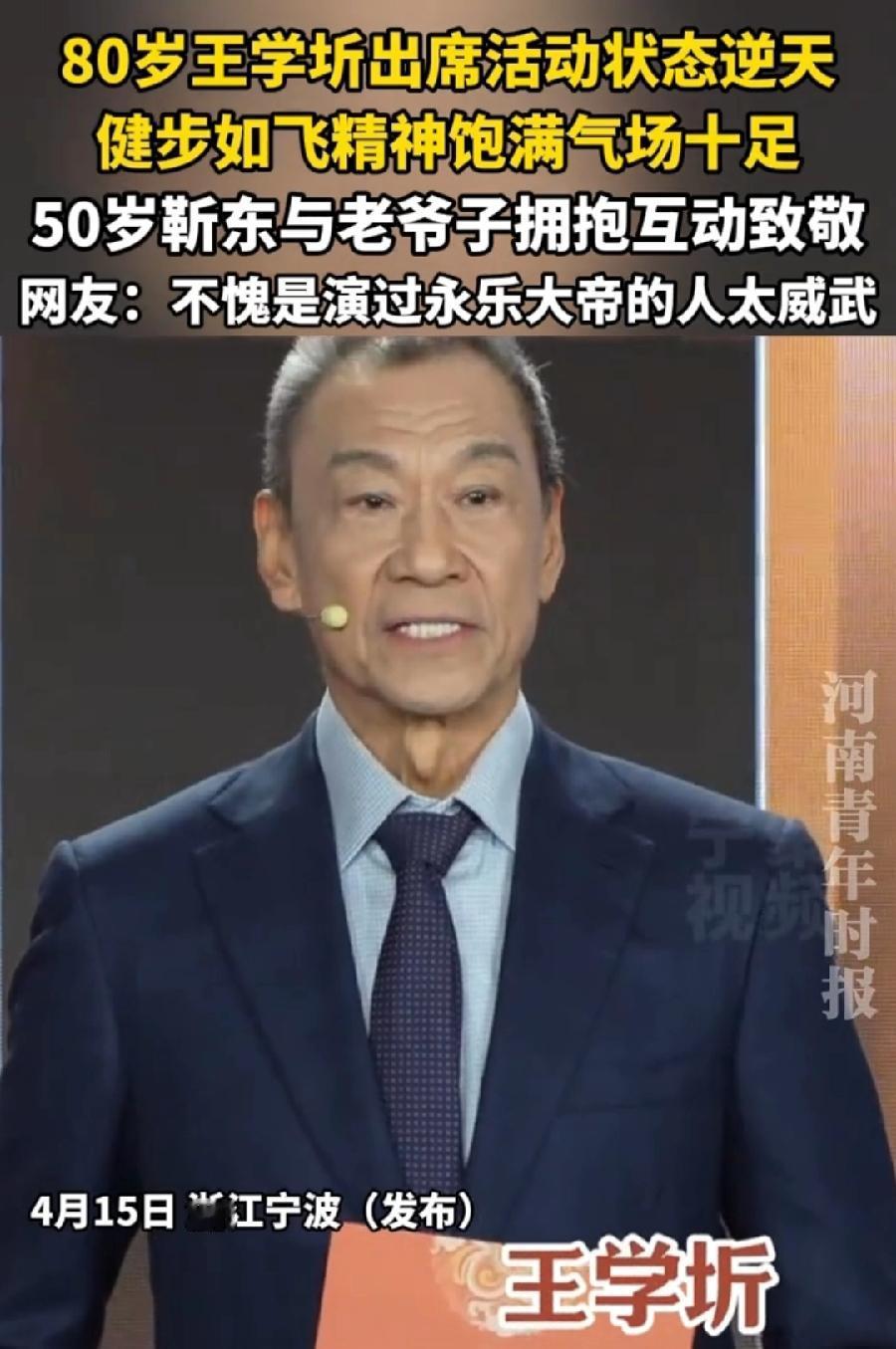 80岁王学圻,这逆天状态,唯一能与钟南山相比名人老年人,走路虎虎生风,站着腰杆笔直,讲话声音洪亮,比普通同龄人至少年轻20岁,像60岁,不敢说活到120,100岁没问题!什么秘诀?军人出身,规律生活,健康饮食,坚持运动锻炼!这年纪这身体,无价财富!祝福王学圻晚年生活幸福!