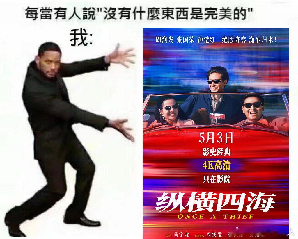 周润发张国荣纵横四海定档 浪漫纵横35年,《纵横四海》定档5月3日,4K修复+绝版阵容,大银幕共赴一场迟到的青春之约。