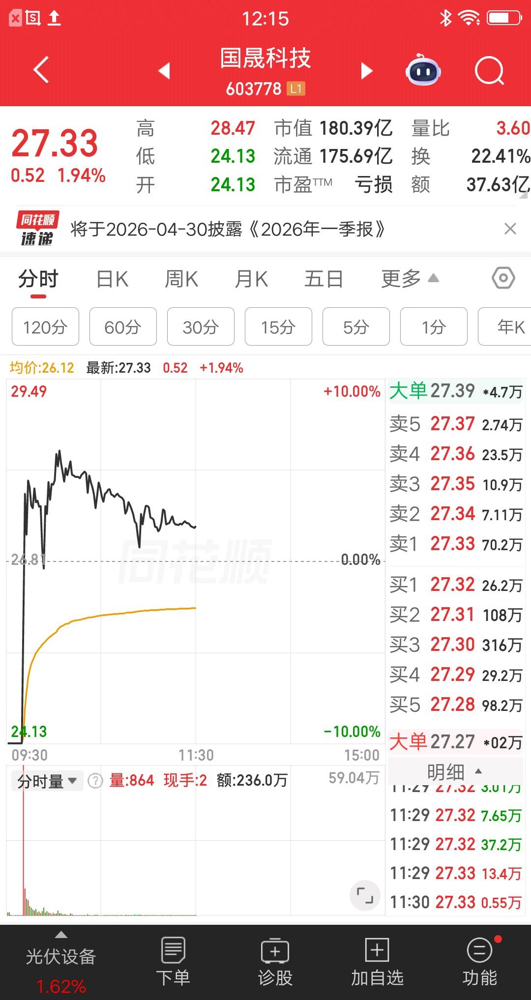 一位四川的股民,在国晟科技上亏麻了,他发帖说“终于跑出去了,三天三十个点亏三十万😭”。 他第一次买国晟科技是在一月份,16.28元买的16.11元卖的,这次操作没咋亏钱。当时国晟科技连续六个地板,他没忍住去抄底了,股价的确反弹了两天。可是后面又跌回去了,跌破成本线的时候,他吓得赶紧止损,亏了点手续费而已。 后来股价企稳后持续上涨,刚开始他认为是主力的老套路,拉升诱多吸引散户。再到后来突破前期新高,他才意识到自己踏空了。一股想买的冲动涌上心头,昨日33.19元梭哈了,结果盘后出了终止收购的利空消息。 他每天都挂地板价割肉,前两天根本卖不掉,急得像热锅上的蚂蚁。今天有资金翘板了,他终于出来了,可是账户惨目忍睹了。 这次大亏对他的信心打击很大,他说他要离开市场一段时间,认真思考自己要不要走下去。