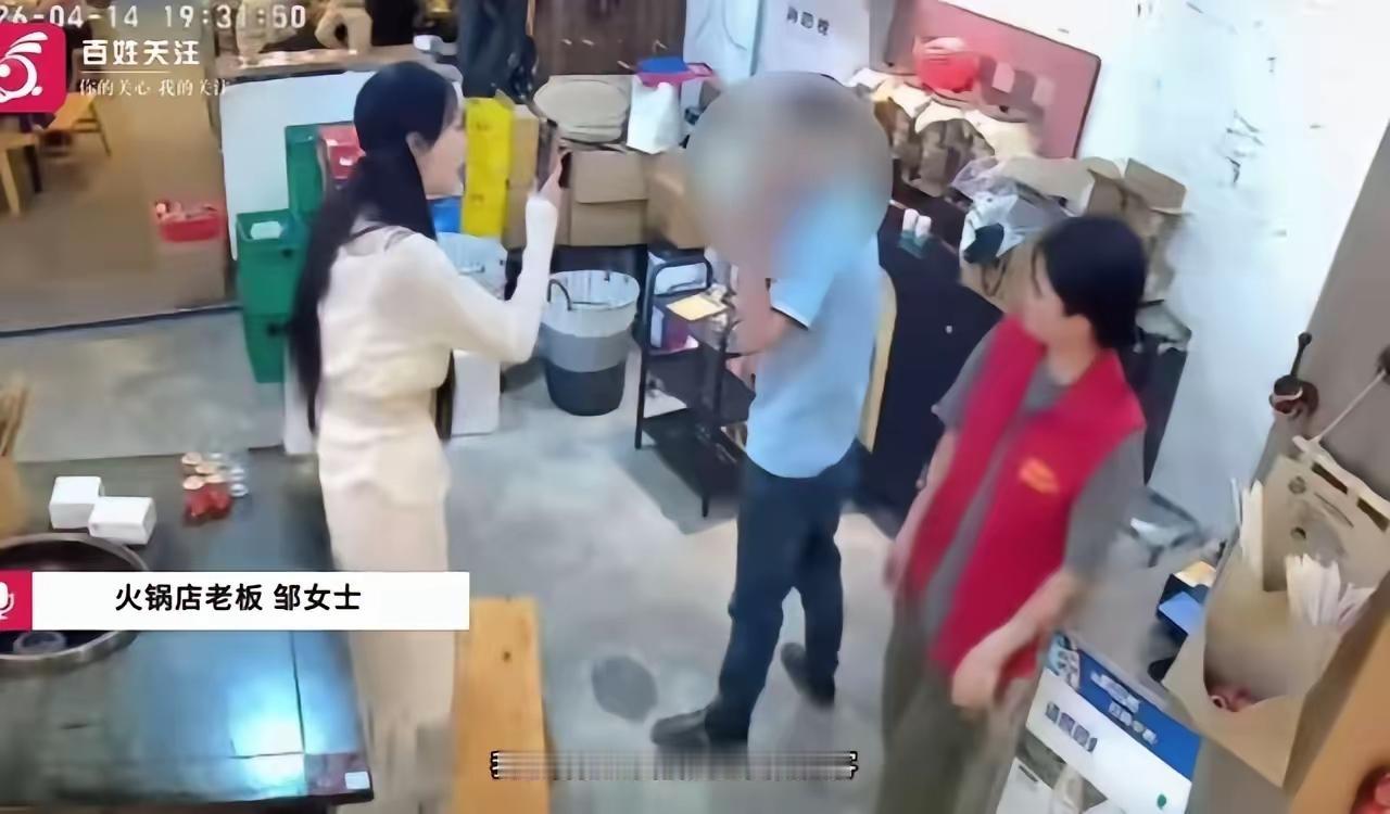 火锅店老板娘遭骚扰 忍无可忍反手一巴掌 4月14日晚,店内客流高峰,一名戴眼镜的男子带着同伴进店用餐。从落座起,男子的目光就始终不怀好意地追随着邹女士。 他先后三次上前搭讪,两次强行要求邹女士陪酒,都被邹女士以忙为由礼貌婉拒。为了不影响生意、避免冲突,邹女士甚至特意送上花生米,试图息事宁人。 可她的退让,只换来了变本加厉。男子从厕所返回后,径直走向正在休息的邹女士,毫无预兆地伸手摸她的脸,紧接着双手搂住她的肩膀,还吹嘘自己是主播公司的,能捧她当女主。 突如其来的肢体侵犯,让邹女士瞬间怒不可遏。她猛地站起身,一把打掉对方的手,反手一记响亮的耳光,狠狠扇在男子脸上,直接将他的眼镜打落在地,镜片当场摔碎。这一巴掌,力道十足,打得男子当场懵在原地,狼狈地蹲下身捡眼镜。 见男子毫无悔意,邹女士立刻将此事告知后厨的丈夫。丈夫得知妻子被欺负,怒不可遏地冲出来,揪住男子就要送派出所。男子的同伴瞬间吓傻,连忙上前拦阻,不停道歉,恳求邹女士夫妇不要报警、不要把事情闹大。 考虑到店内还有其他客人,为了不影响店铺生意,邹女士夫妇选择了退让,只要求男子当场道歉,并明确告知他今后不再欢迎其到店。 男子连忙低头认错,随后灰溜溜地带着同伴离开了火锅店。 骚扰