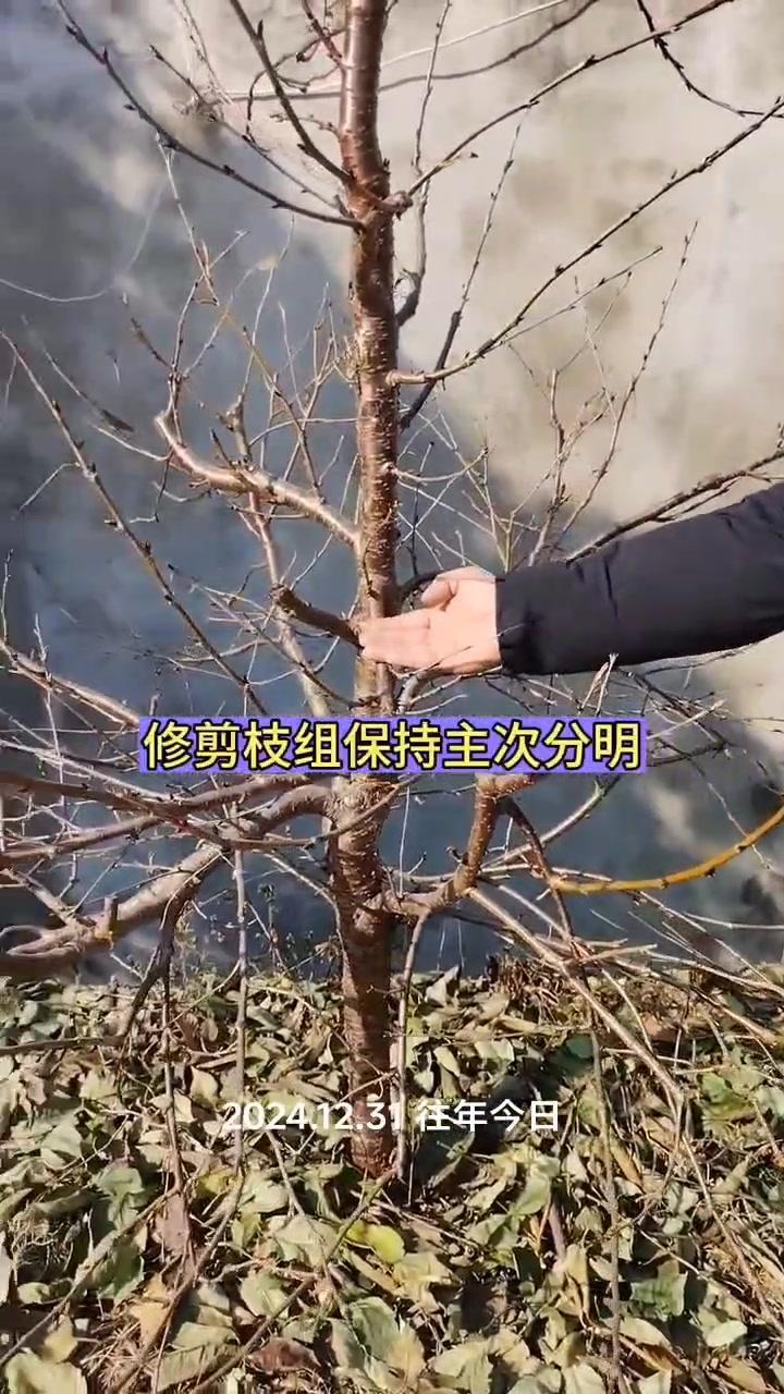冬剪要调整不合理骨架,进行大枝修剪;夏季拉枝剪细枝,避免剪粗枝导致流胶。修剪枝组需主次分明,下部枝组均匀分布,侧枝和主干打开角度。留桩要留芽,若上部无芽点易干枯腐烂,贴平主干修剪,下部无芽点则在分枝处剪,保证营养流向顺畅、伤口愈合快。 侧枝常因主次不分与结果枝竞争,需换头式修剪,选定主枝和次枝,打压次枝、扶持主枝,避免强旺营养枝导致小枝干枯。多留芽点修剪,能萌发细枝形成小枝组,多压点打结可让侧枝分化更多细枝,为明年结果做准备。