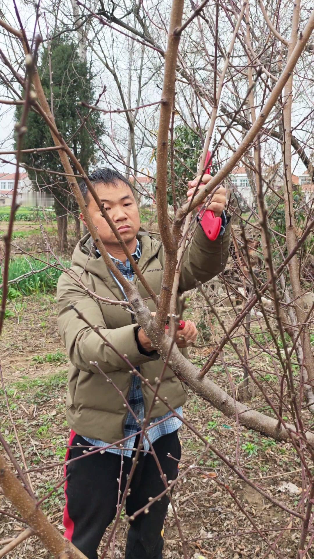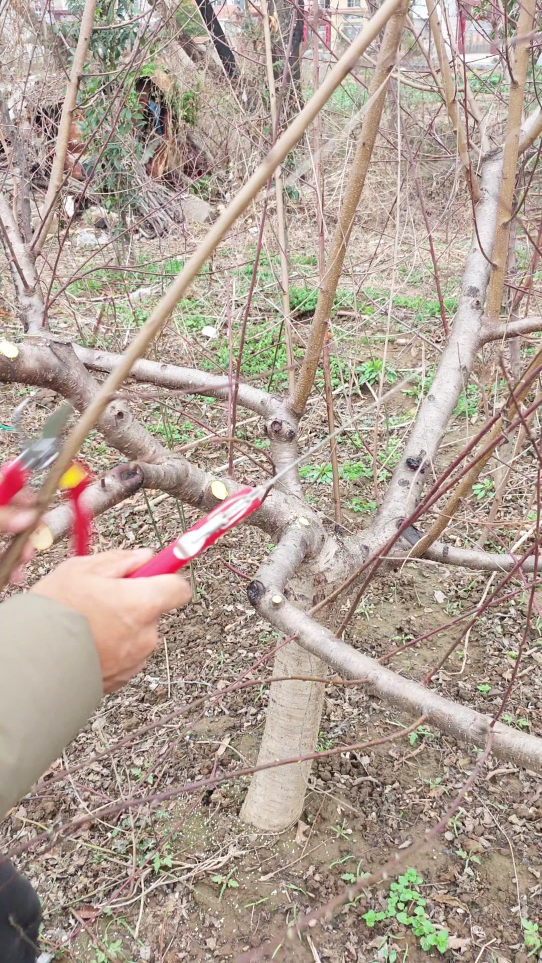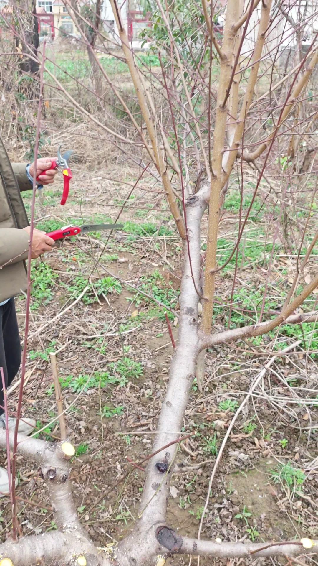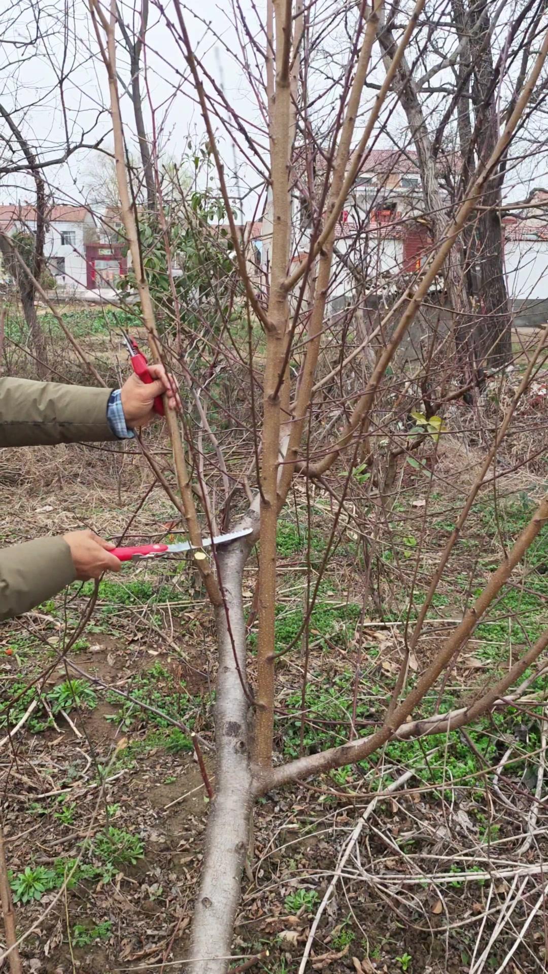 1️⃣确定主枝延伸头:先选角度合适的枝条作为主枝延伸头,对竞争枝条进行压缩处理。两个枝条并列生长时,只留一个作为主枝,打开主枝角度,过粗枝条要留芽修剪。 2️⃣培育主枝结构:选留4大主枝,都以弱枝带头,主枝角度倾斜并抬升。这样的结构能有效控制旺长,为结果枝创造良好生长环境。 3️⃣保留结果枝:通过合理修剪,多留细弱的结果枝,既能利用空间,又能保证桃树的结果量和质量。