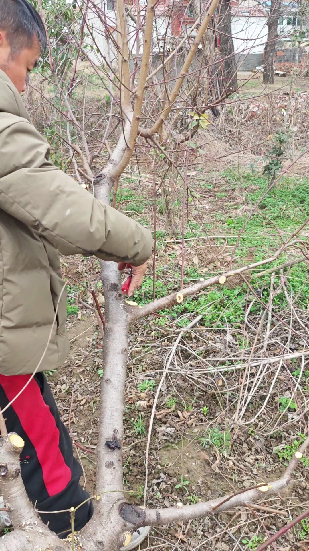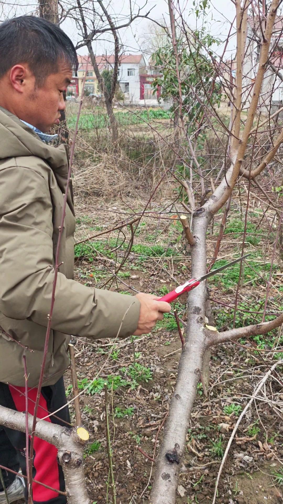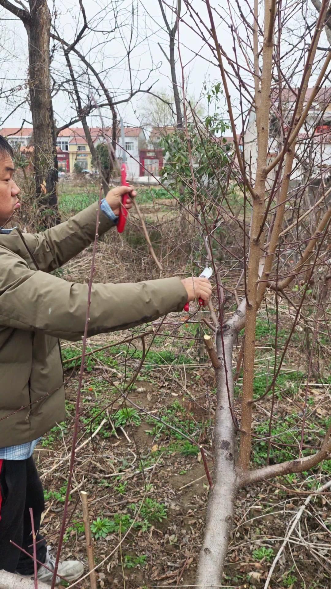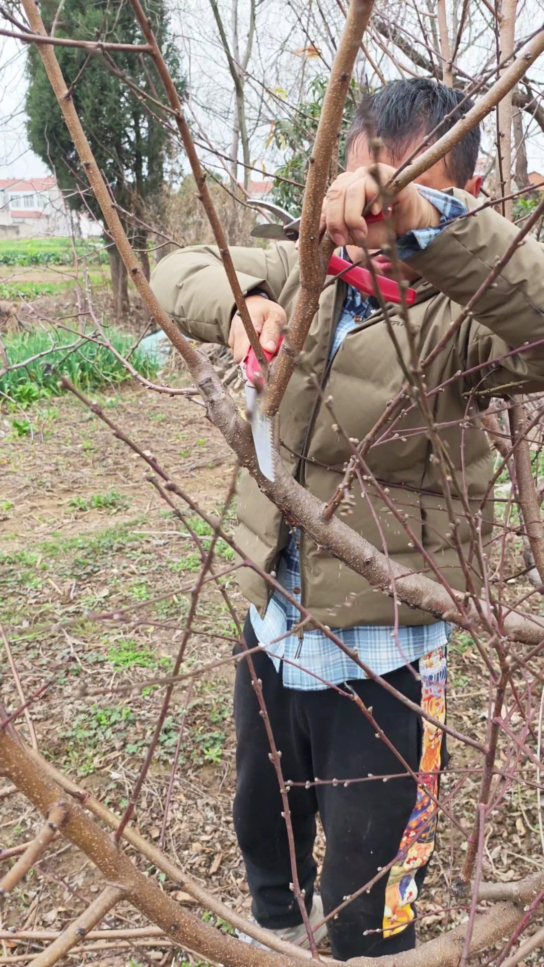 1️⃣确定主枝延伸头:先选角度合适的枝条作为主枝延伸头,对竞争枝条进行压缩处理。两个枝条并列生长时,只留一个作为主枝,打开主枝角度,过粗枝条要留芽修剪。 2️⃣培育主枝结构:选留4大主枝,都以弱枝带头,主枝角度倾斜并抬升。这样的结构能有效控制旺长,为结果枝创造良好生长环境。 3️⃣保留结果枝:通过合理修剪,多留细弱的结果枝,既能利用空间,又能保证桃树的结果量和质量。