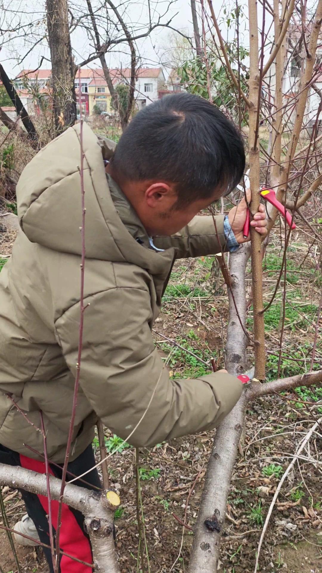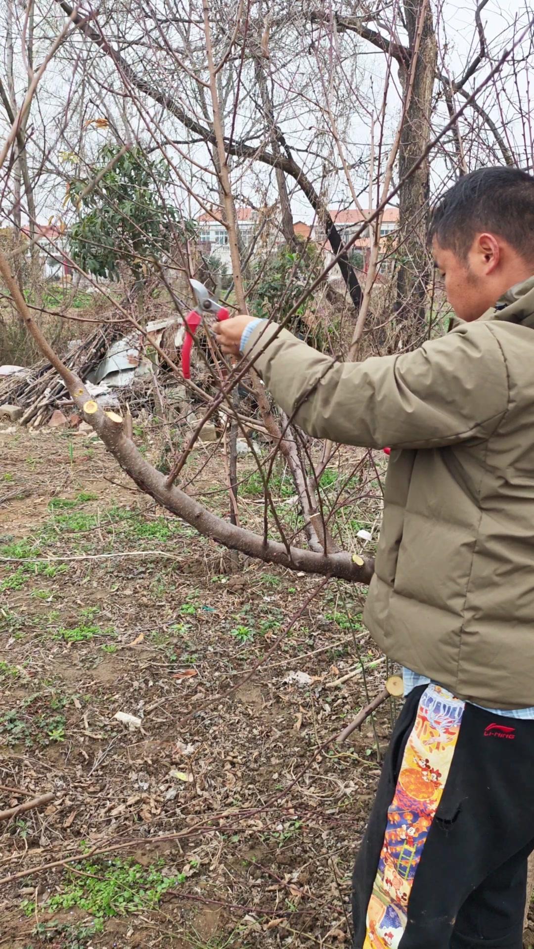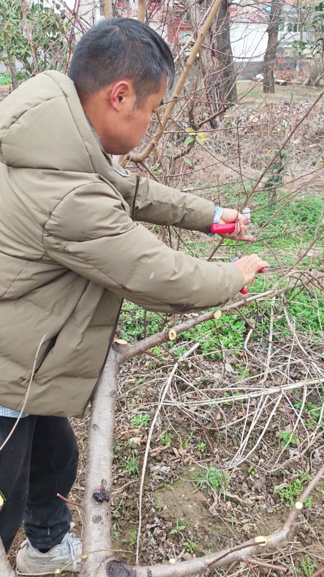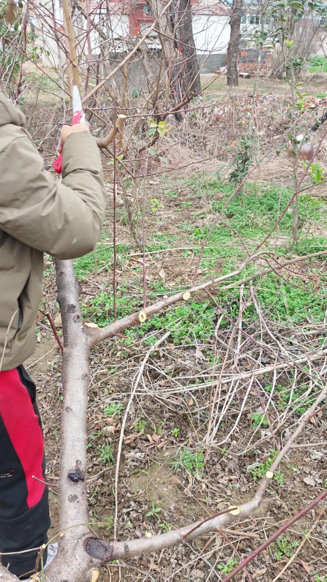 1️⃣确定主枝延伸头:先选角度合适的枝条作为主枝延伸头,对竞争枝条进行压缩处理。两个枝条并列生长时,只留一个作为主枝,打开主枝角度,过粗枝条要留芽修剪。 2️⃣培育主枝结构:选留4大主枝,都以弱枝带头,主枝角度倾斜并抬升。这样的结构能有效控制旺长,为结果枝创造良好生长环境。 3️⃣保留结果枝:通过合理修剪,多留细弱的结果枝,既能利用空间,又能保证桃树的结果量和质量。