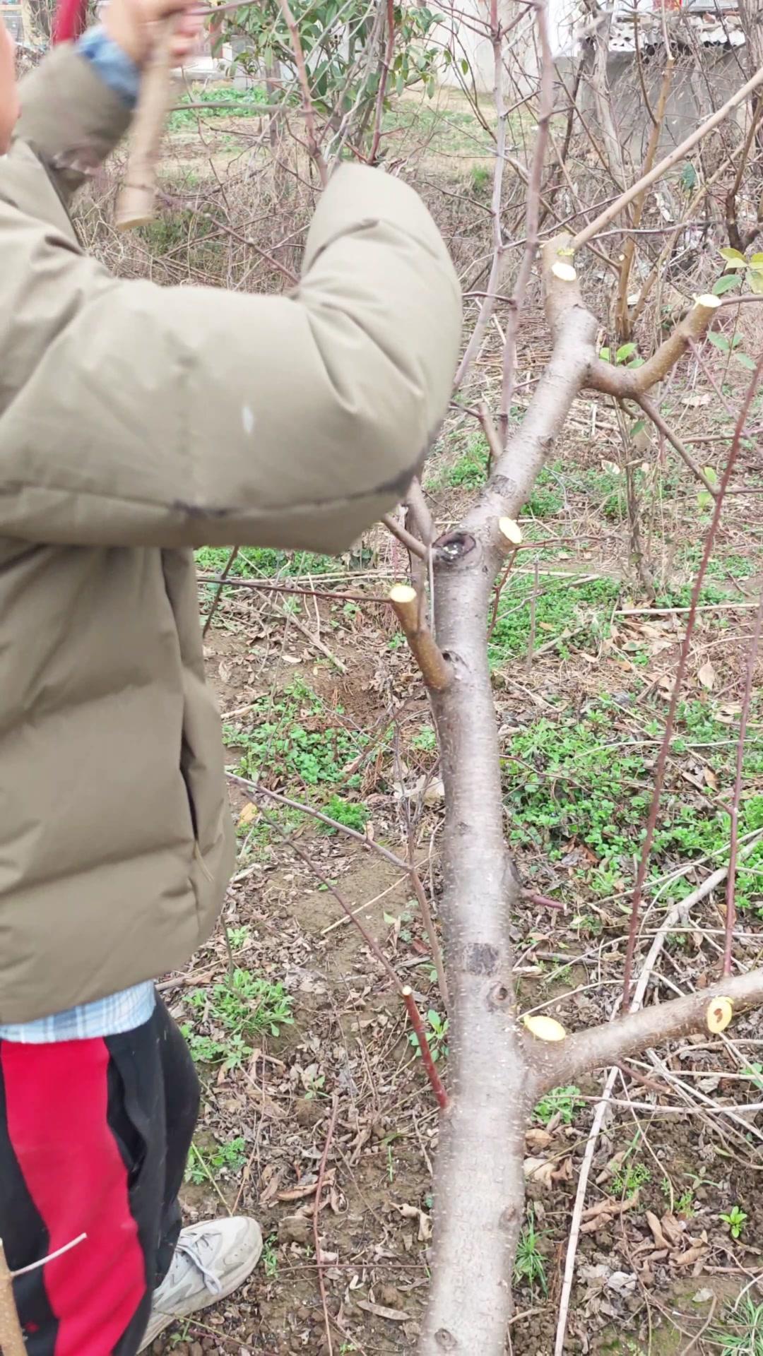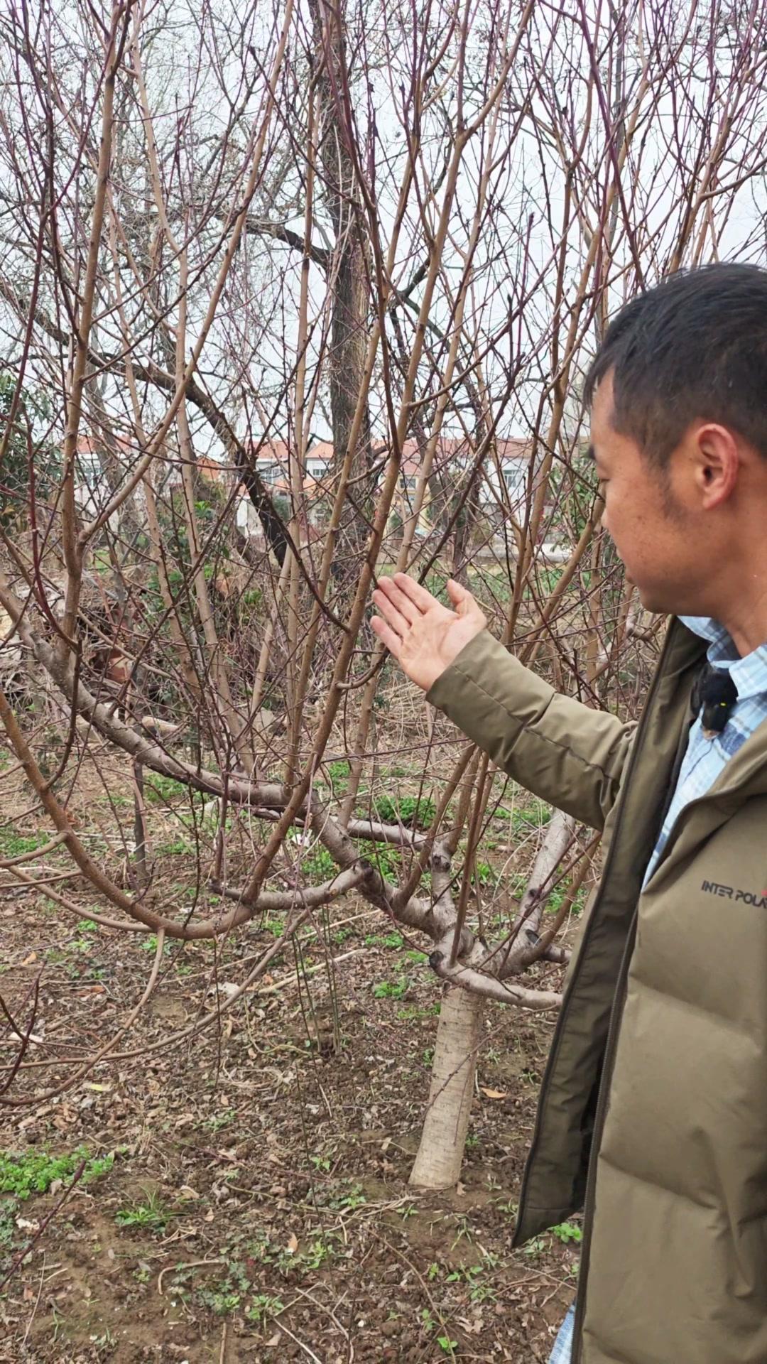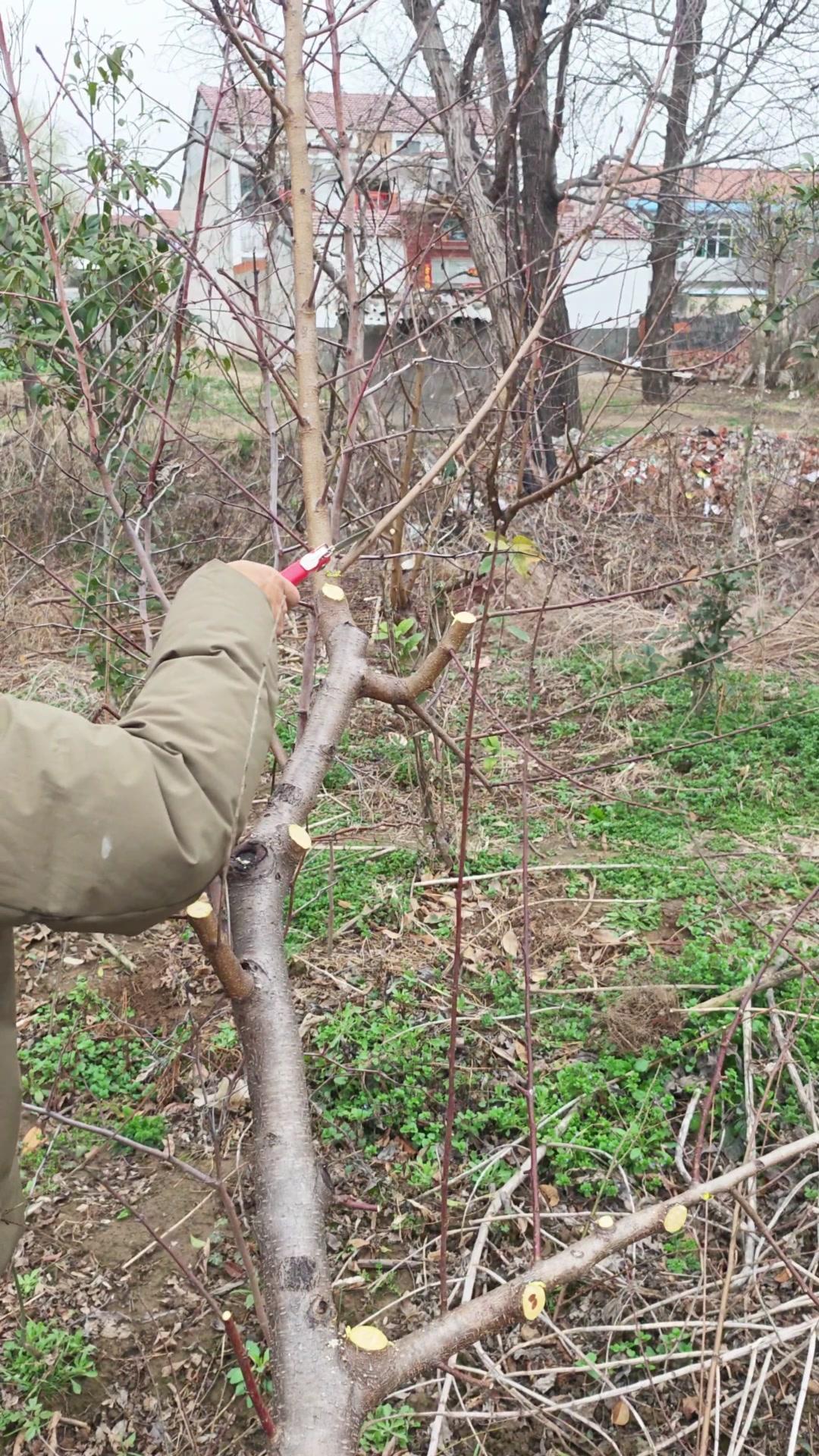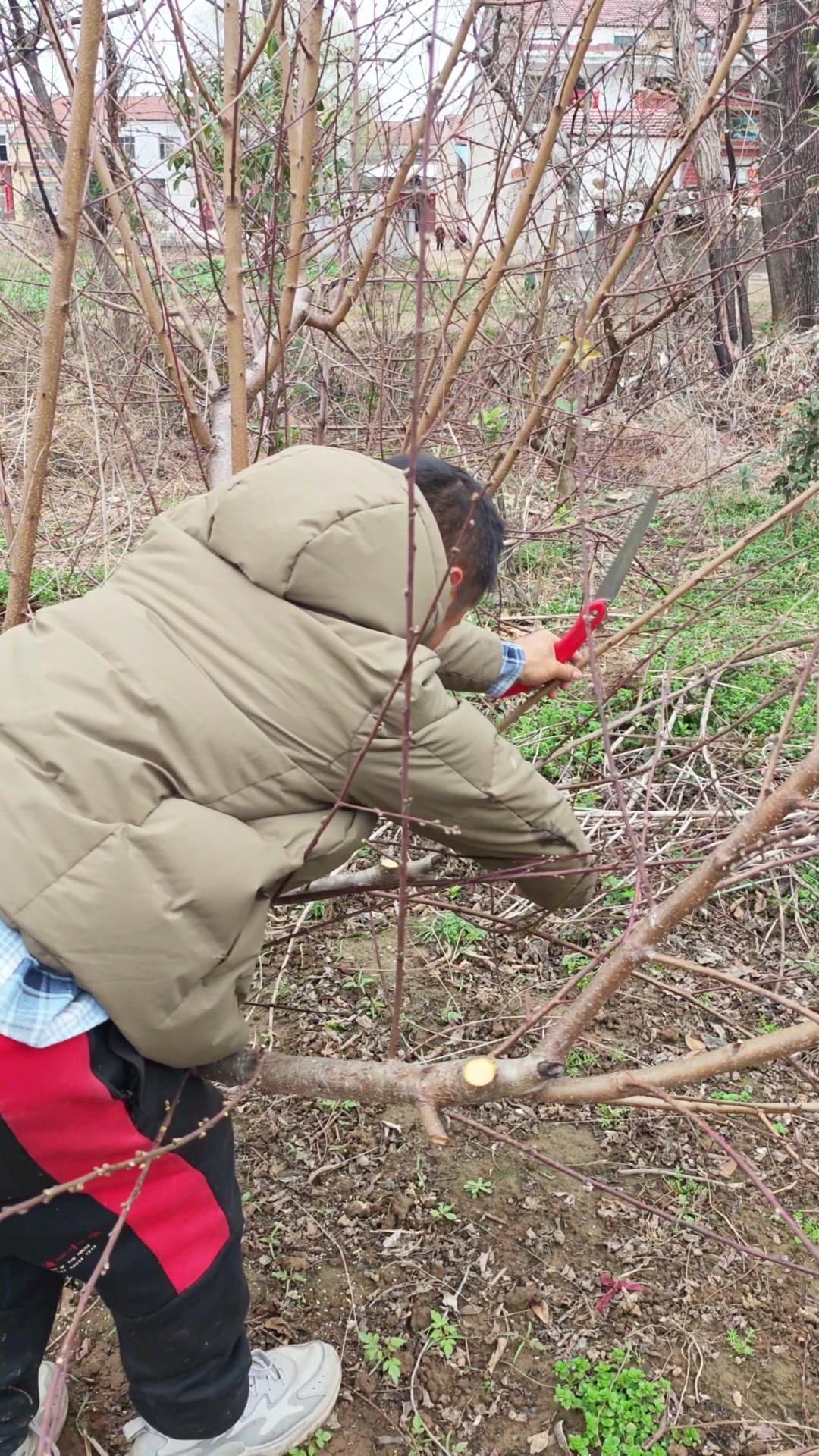 1️⃣确定主枝延伸头:先选角度合适的枝条作为主枝延伸头,对竞争枝条进行压缩处理。两个枝条并列生长时,只留一个作为主枝,打开主枝角度,过粗枝条要留芽修剪。 2️⃣培育主枝结构:选留4大主枝,都以弱枝带头,主枝角度倾斜并抬升。这样的结构能有效控制旺长,为结果枝创造良好生长环境。 3️⃣保留结果枝:通过合理修剪,多留细弱的结果枝,既能利用空间,又能保证桃树的结果量和质量。
