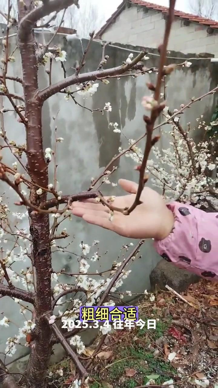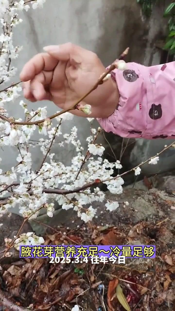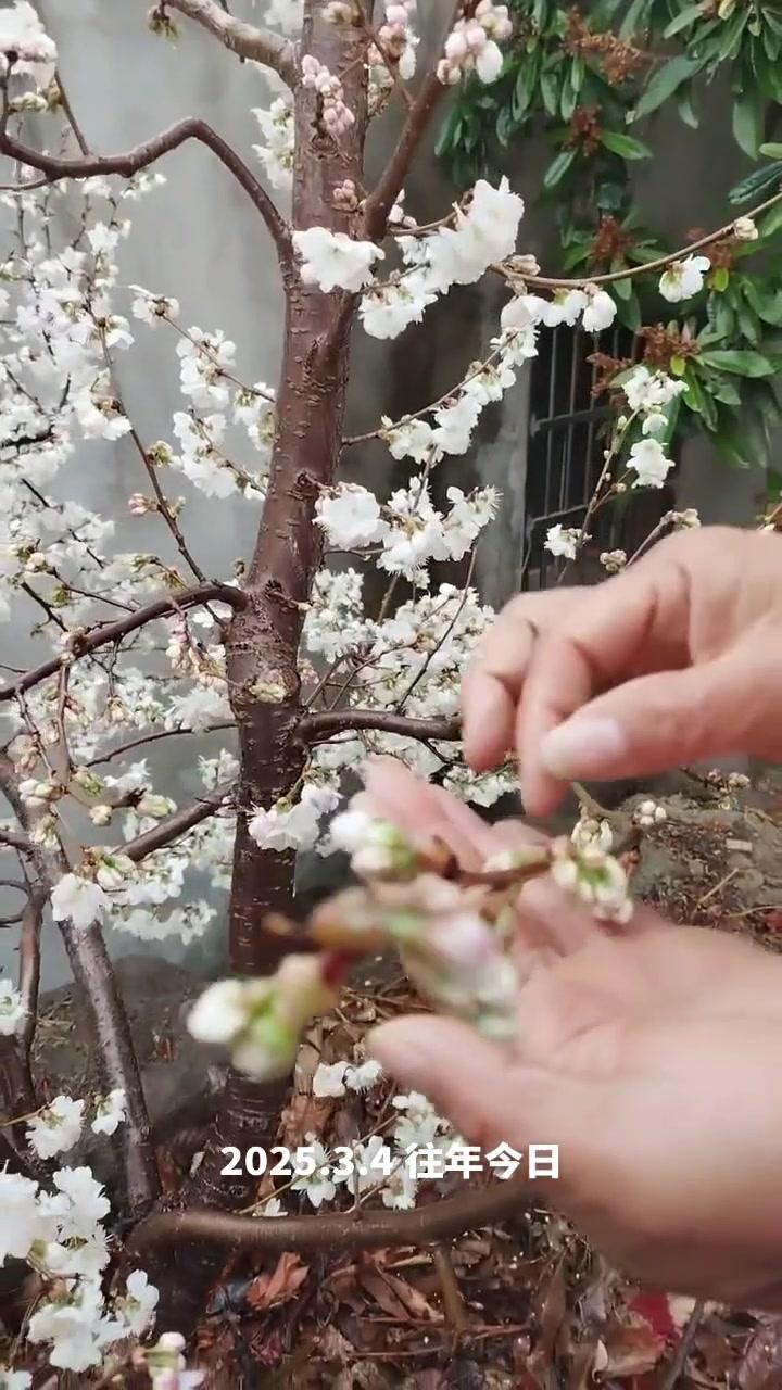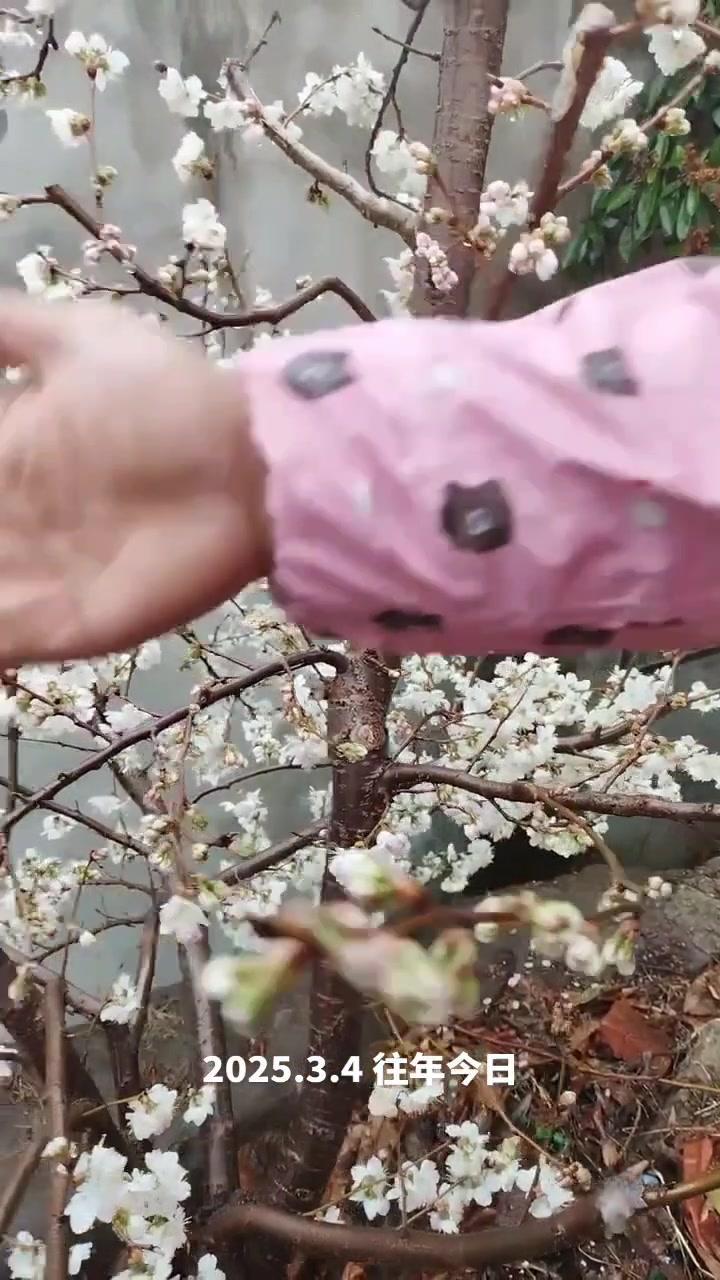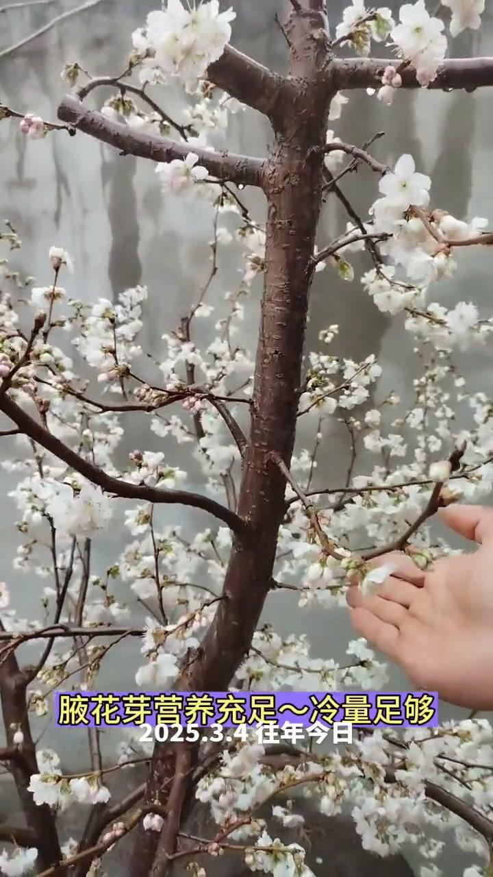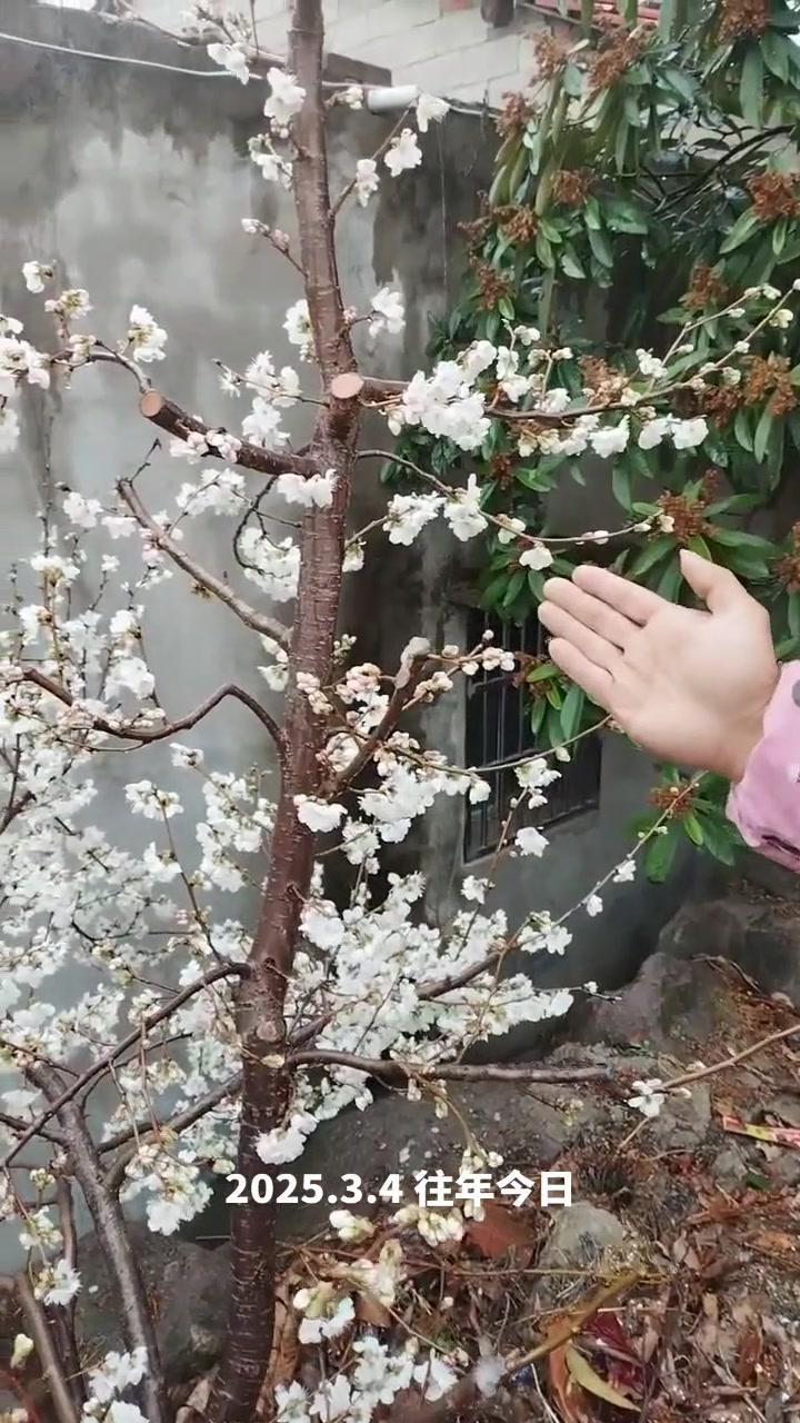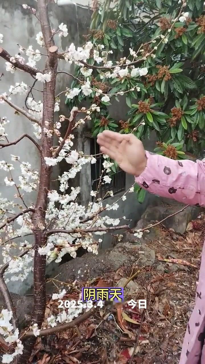 🌦️3月3日湖北阴雨天,红妃樱桃已进入盛发期,气温骤降至1℃,连阴天对授粉影响大。去年倒春寒严重,村民满树花却结很少果,今年需重点防范。 1️⃣修剪策略:多留小枝作为结果枝,避免大枝徒长,确保树体枝组势力均衡。红妃樱桃为小果型品种,结果枝分布均匀、粗细合适才能高产。 2️⃣花前管理:花苞露白时及时打药,选用吡虫啉+高效氯氟氰菊酯防治蚜虫,搭配苯醚甲环唑杀菌,控制第一代蚜虫繁殖基数,减少后续爆发。盛花期蚜虫危害幼果,导致畸形落果,此时花期敏感不能用药,需待花谢80%后再施花后药,中间留时间差。 3️⃣观察状态:红妃樱桃花苞开花速度比桃树快,高两天就绽放。花前药完成后,小枝均匀开花,腋花芽营养充足时会分化成花,若营养不足则成叶片,需耐心等待好天气保证授粉。