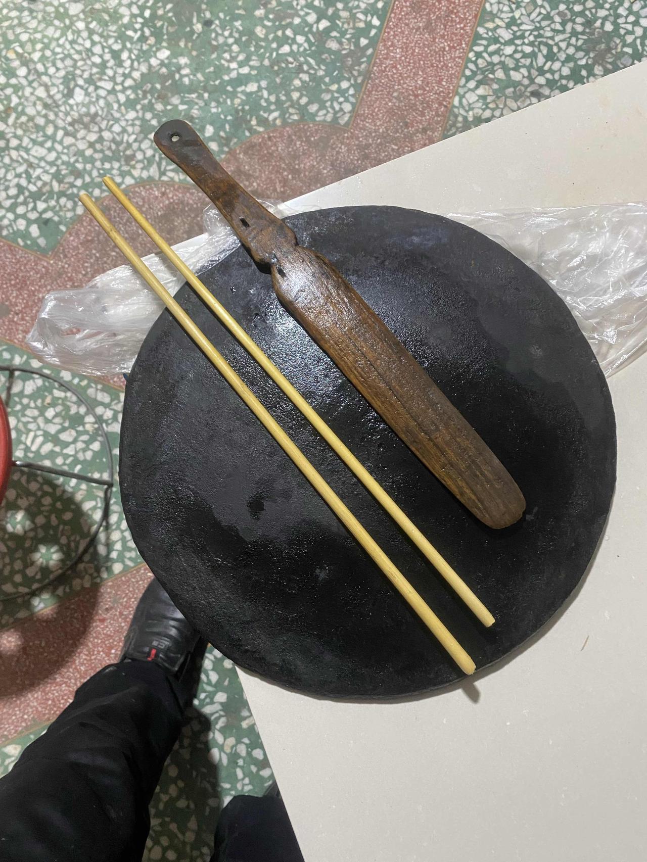 也许现在的年轻人很少见到,这是二月二龙抬头这天,咱家的必用品。 相信我的兄弟姐妹们都知道这是个什么东西,因为他们和我一样,每年想沾点福气。 其实,我也知道它的名字,就是不知道这名字怎么写。 在以前和父母一起生活的时候,每年的二月二都用它。 父母说,这叫“熬子”,这是沾龙气的东西。 也许是因为想熬出子孙兴旺的意思吧! 不过,在这上面做出的煎饼却真的美味可口。 这东西是七十年代,老爸特意打造的,村上最少二十多户人家借用过。 明天二月二,我忽然想到了它,刚刚翻腾出来,明天再试试。 咱也沾沾福气、沾沾龙气,同时也希望让大家沾点福气。 却不知大家有认识的没?你们把这用具叫什么?能说一下吗?