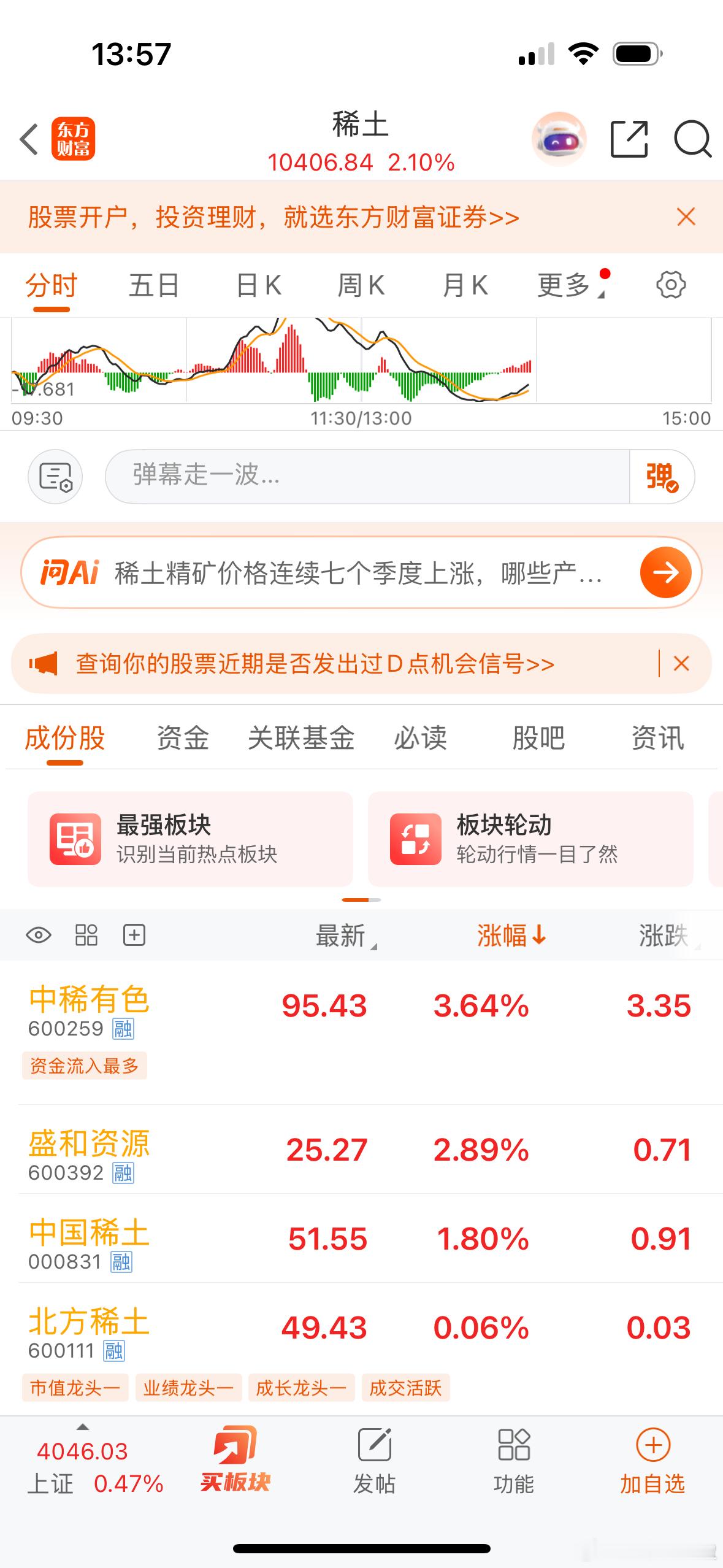 有色金属今天也跟随锂矿有反弹,有色金属短期季报和年报等还会有高增长,而且目前震荡到位,后面依旧有反弹修复的机会,所以有色、稀土等还可以做关注。操作上,持股待涨,不追高参与,逢低做多。