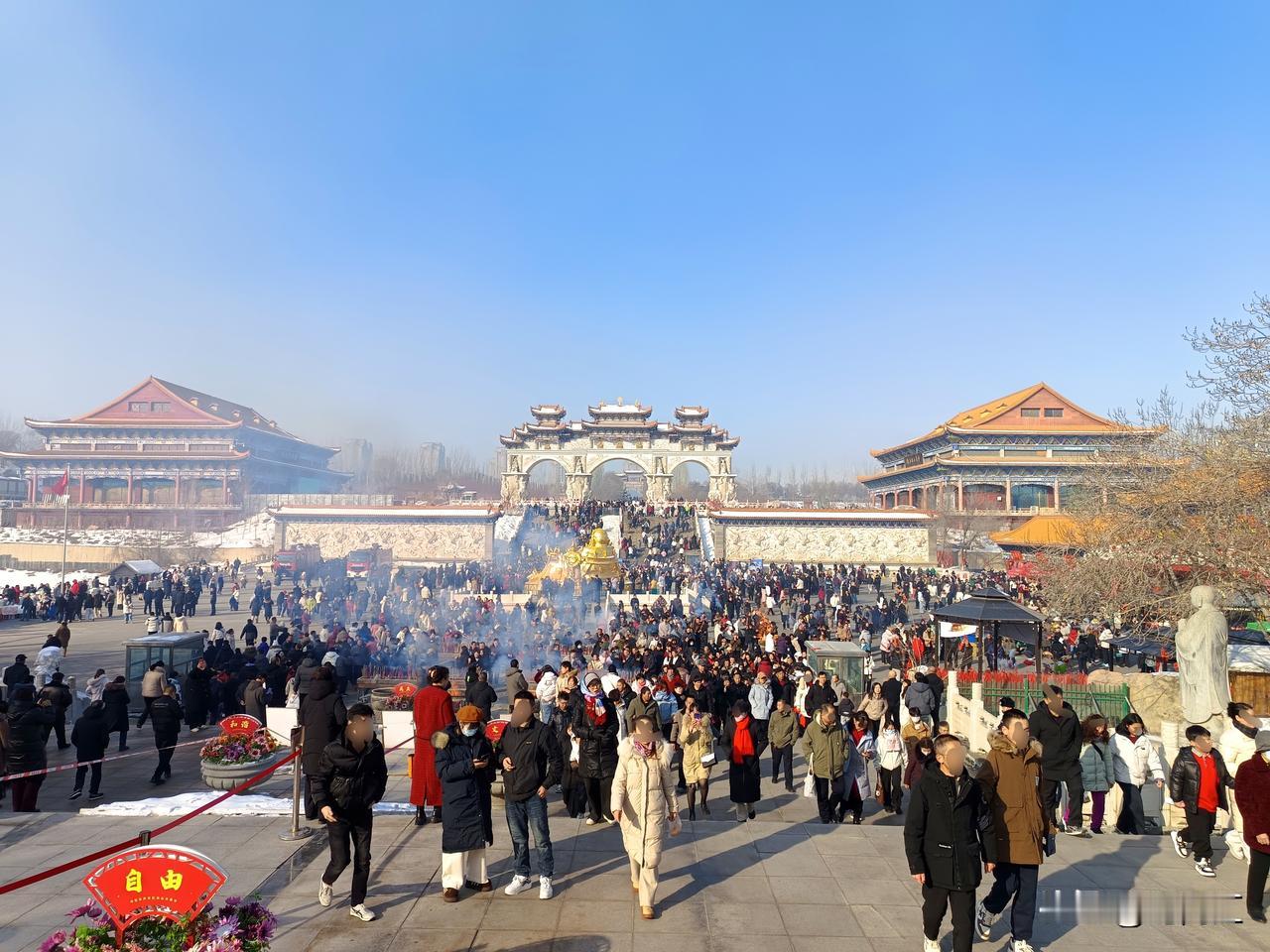 新年祈福,络绎不绝。鞭炮齐鸣,驱逐年兽。