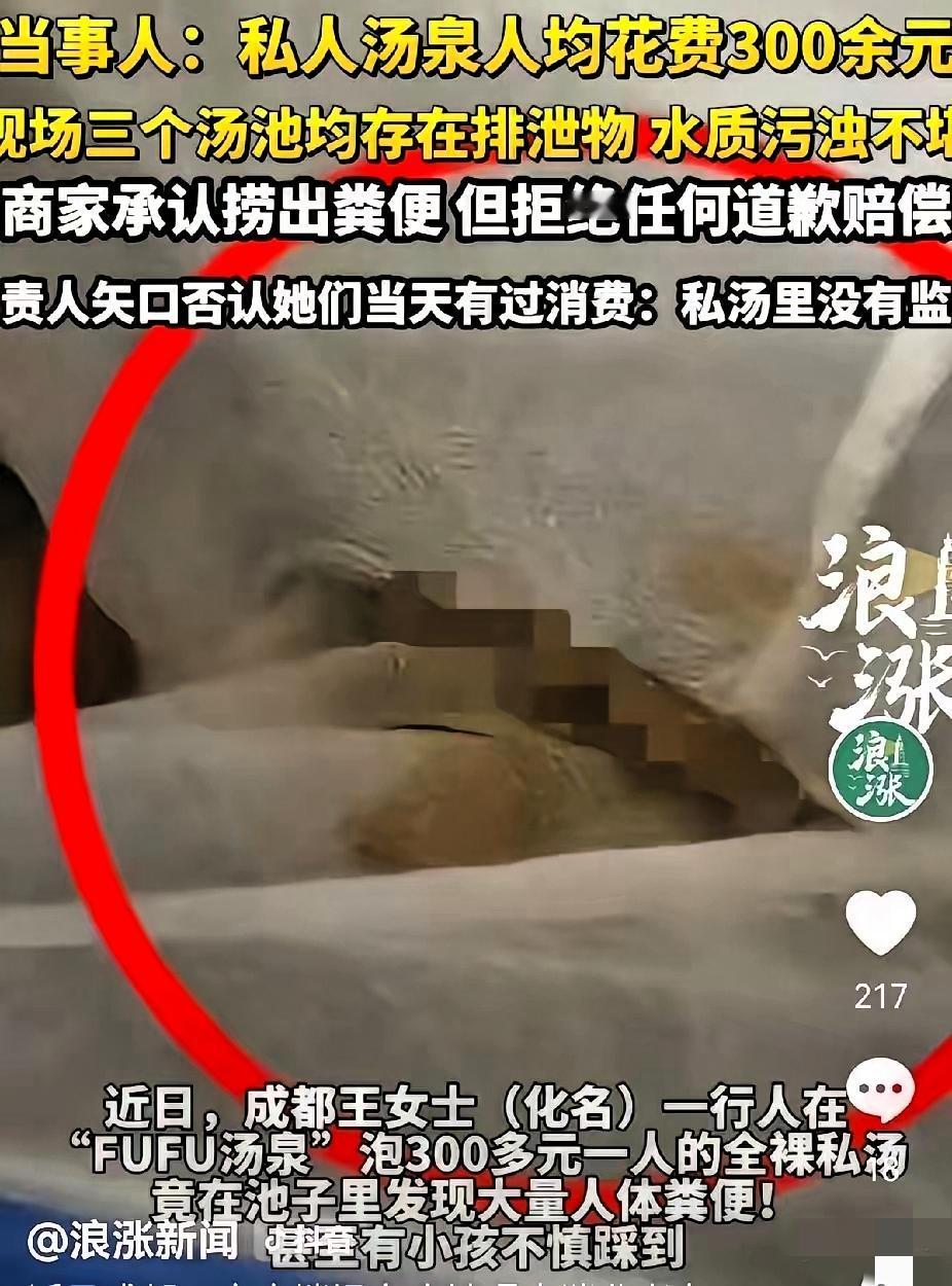 太恶心了!成都女子高价泡私汤,池内发现污物,商家态度嚣张拒不负责 真的三观被震碎!成都一位女士花高价打卡网红私汤店,本想假期好好放松一下,没想到直接碰上离谱卫生翻车现场,体验感差到极点。 清明假期,王女士带着家人孩子,人均三百多块预约了私密私汤房间,冲着环境干净、私密性好才选了高价套餐。谁料刚下水没多久,孩子就摸到池里有异物,凑近一看臭气熏天,竟然是排泄物。工作人员排查后更吓人,店里三间私汤池全部被污染,水质浑浊不堪。 好好的休闲出行,变成糟心经历,大人孩子全都又恶心又难受。王女士只是正常讨要说法,要求道歉赔偿,完全合理合规。可店家做法让人无比气愤,明知卫生严重不达标,却拿场内无监控当借口,直接否认顾客到店消费,拒绝承担所有责任。 更过分的是,店家不仅不整改不消杀,还反客为主诬陷顾客故意找麻烦。其实说到底,这根本不是简单卫生问题,是商家毫无服务底线,仗着私密场地不好取证,肆意敷衍卫生工作,漠视消费者身体健康。 我们花钱消费,本该享受安全合规的服务,凭什么还要被动承担商家管理失职的后果?遇到这种无赖商家,我们就该拿起法律武器维护自身权益,绝不忍气吞声。换作是你遇到这种情况,你会直接维权到底,还是直接转身远离这家店?