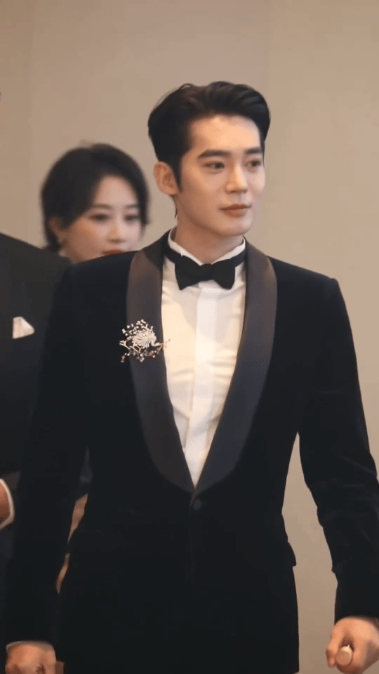 于适身着深色西装。佩戴 CHAUMET Les Ciels de Chaumet天穹皓境高定珠宝套系的Parade“羽鹤弄影”胸针。北京国际电影节时尚灵感解读 四渡定档