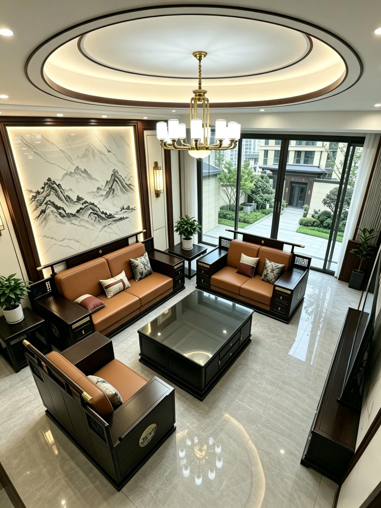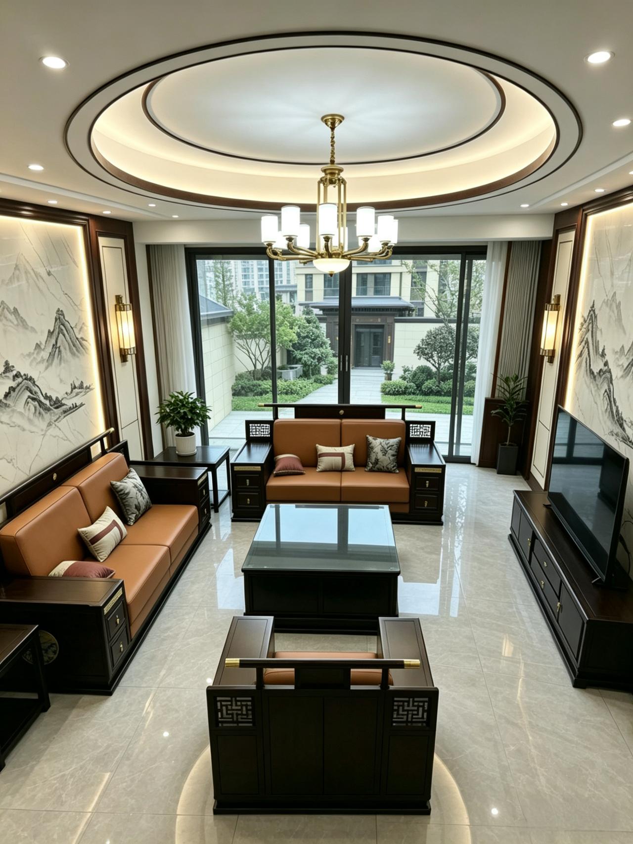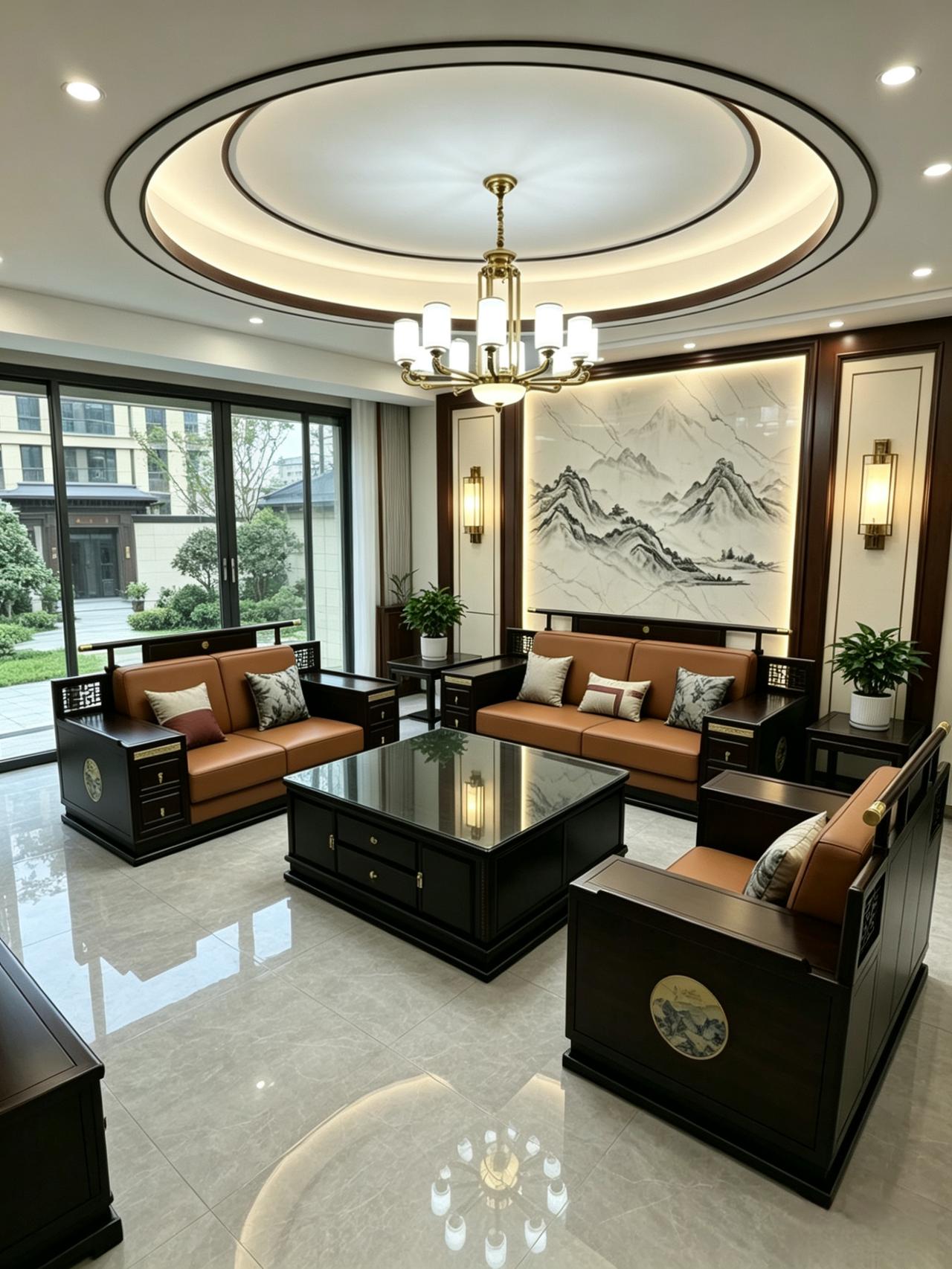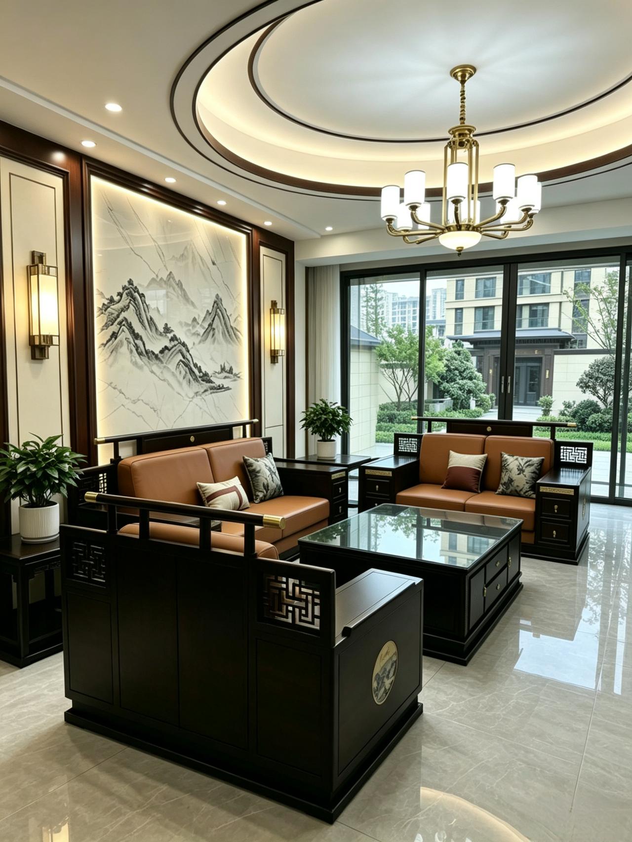 新中式客厅风格装修 新中式家具 新中式沙发 全屋定制 客厅搭配