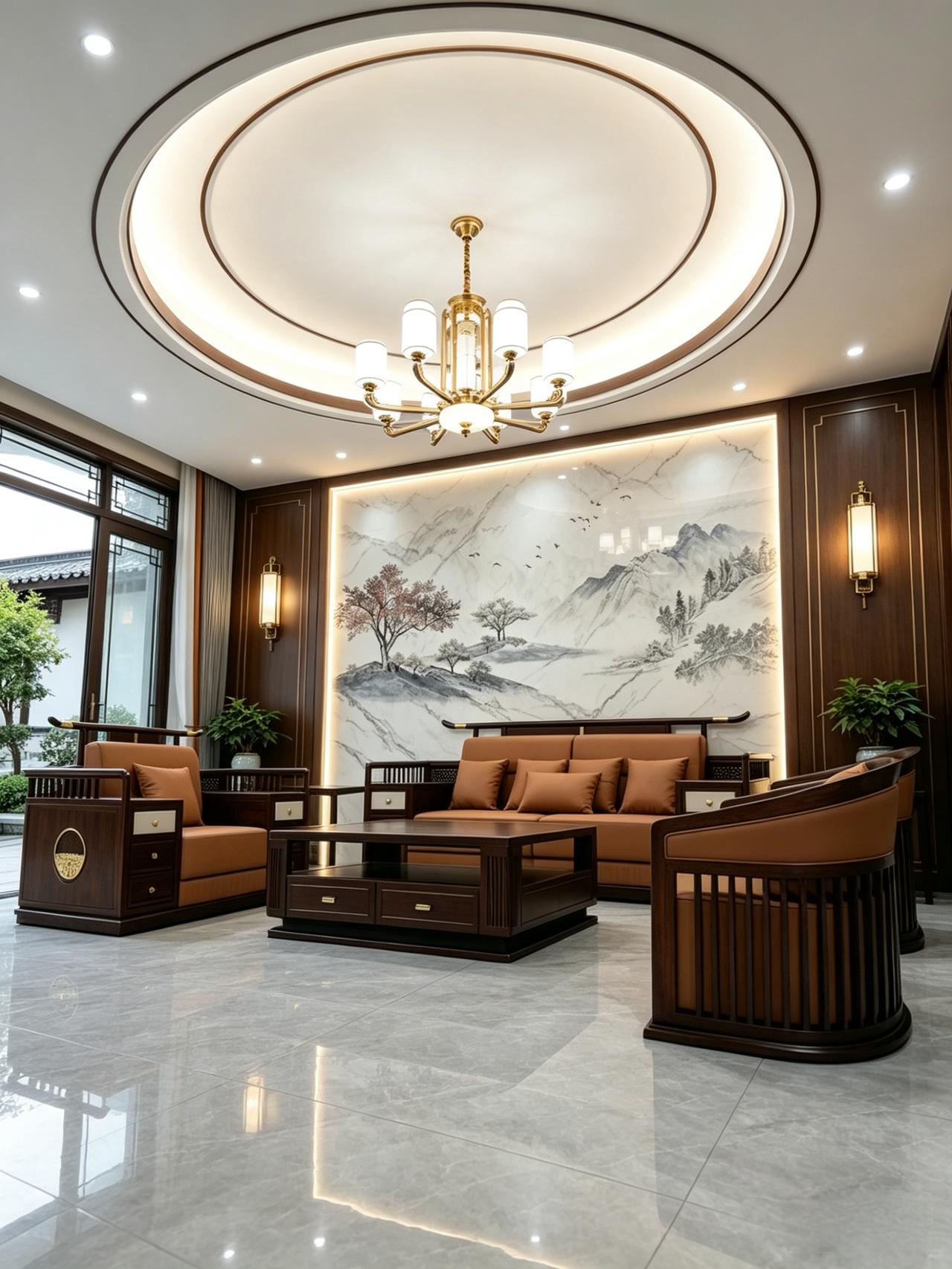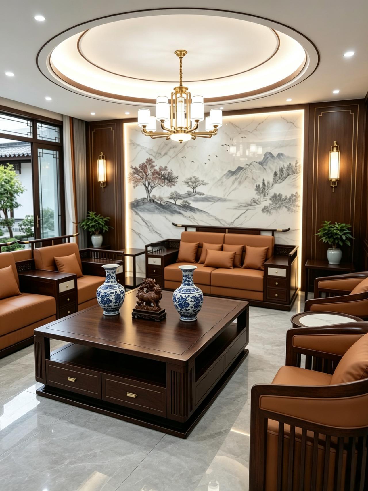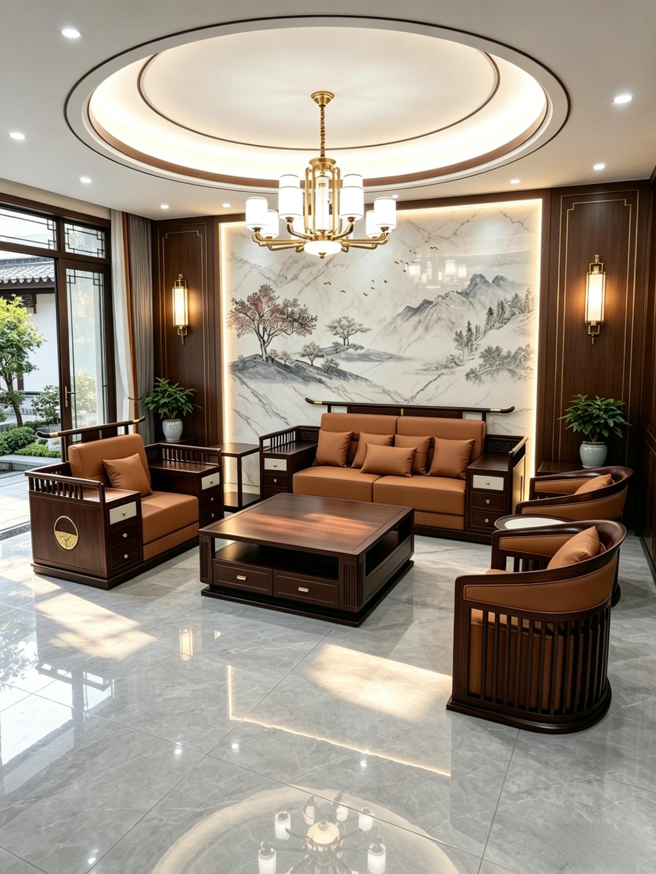 新中式客厅风格装修新中式家具新中式沙发全屋定制家具客厅搭配