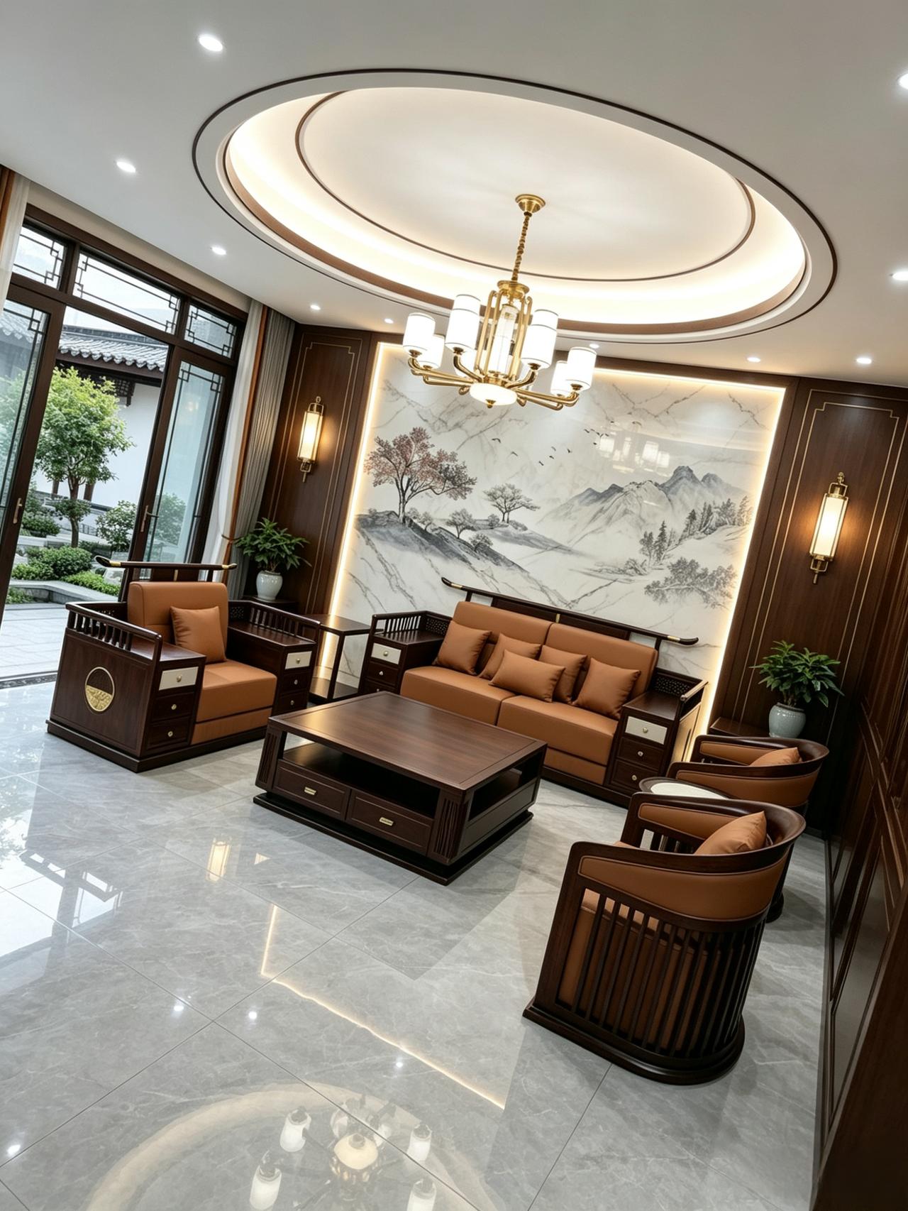新中式客厅风格装修 新中式沙发 新中式家具 农村自建房 新中式自建房