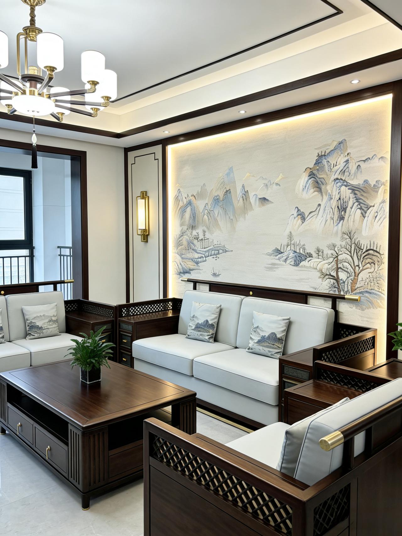 新中式客厅风格装修 新中式家具 新中式沙发 全屋定制 客厅搭配