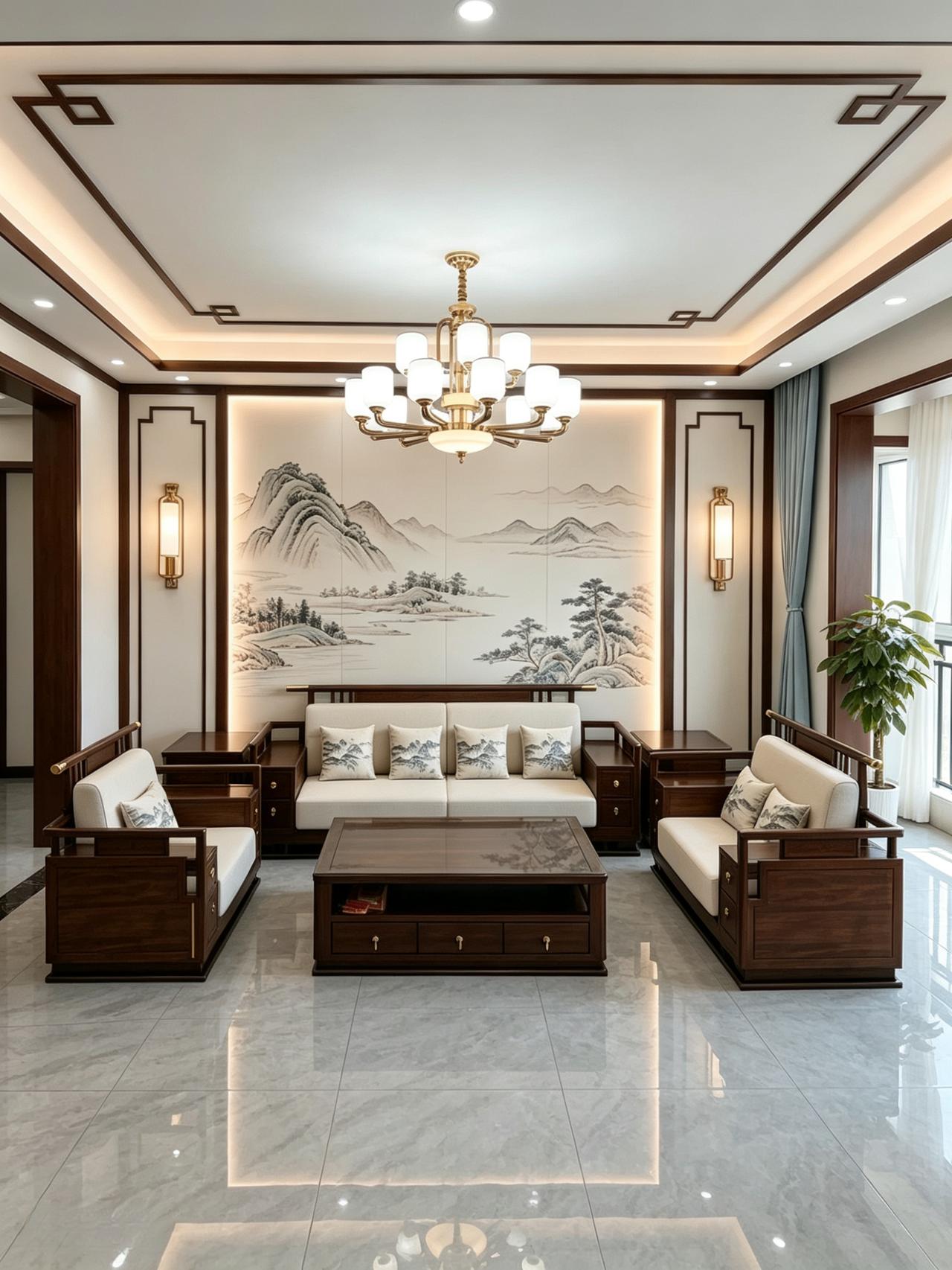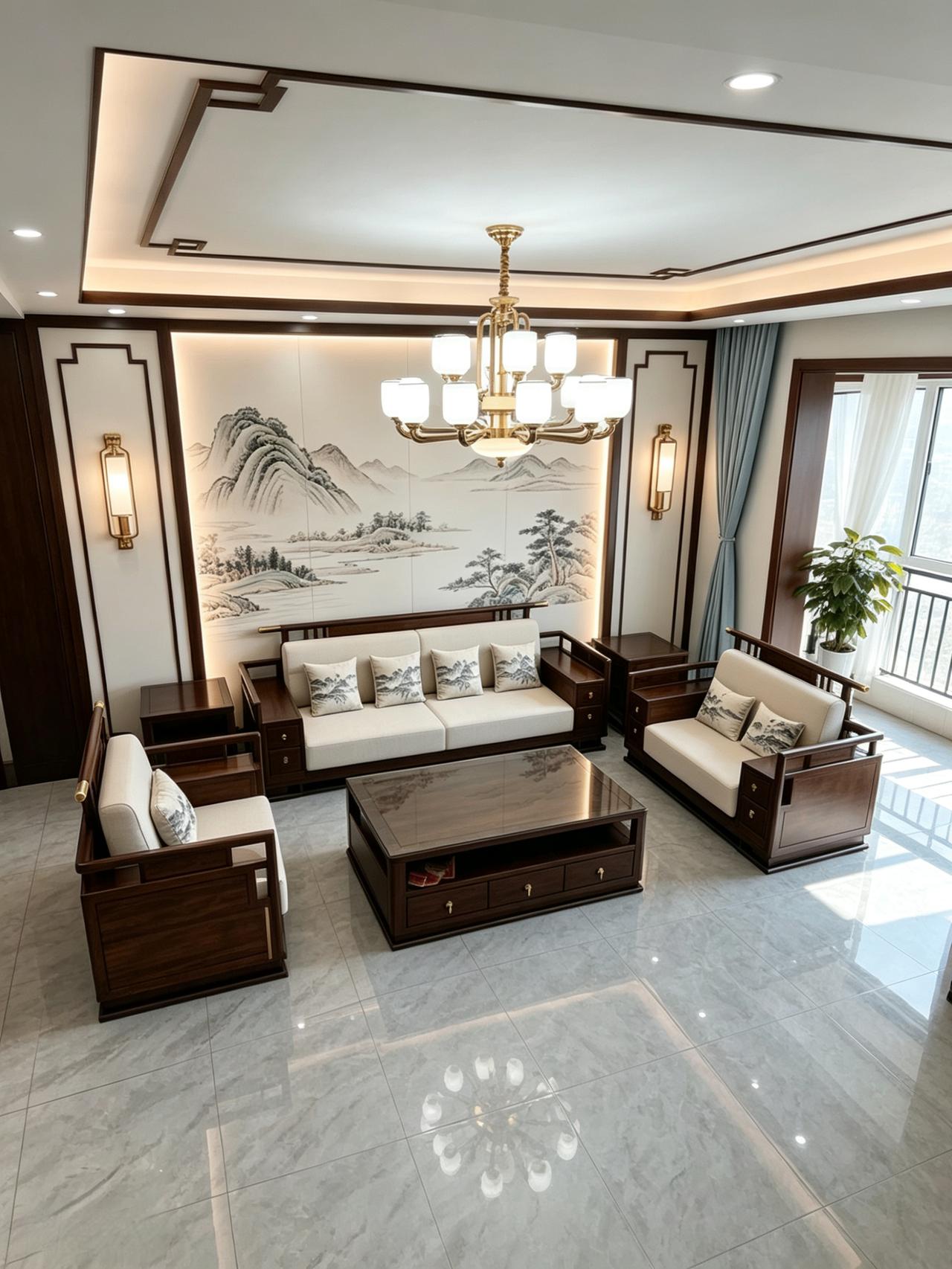 新中式客厅风格装修 新中式家具 新中式沙发 全屋定制 客厅搭配