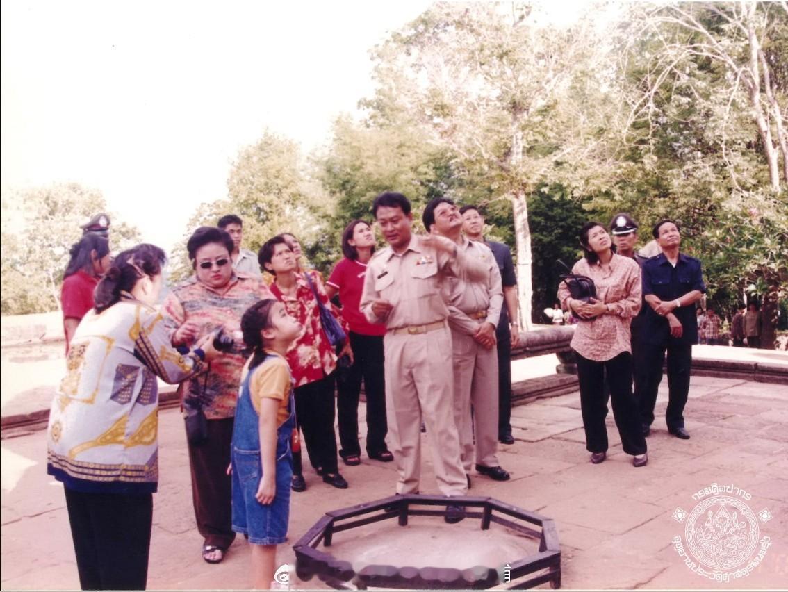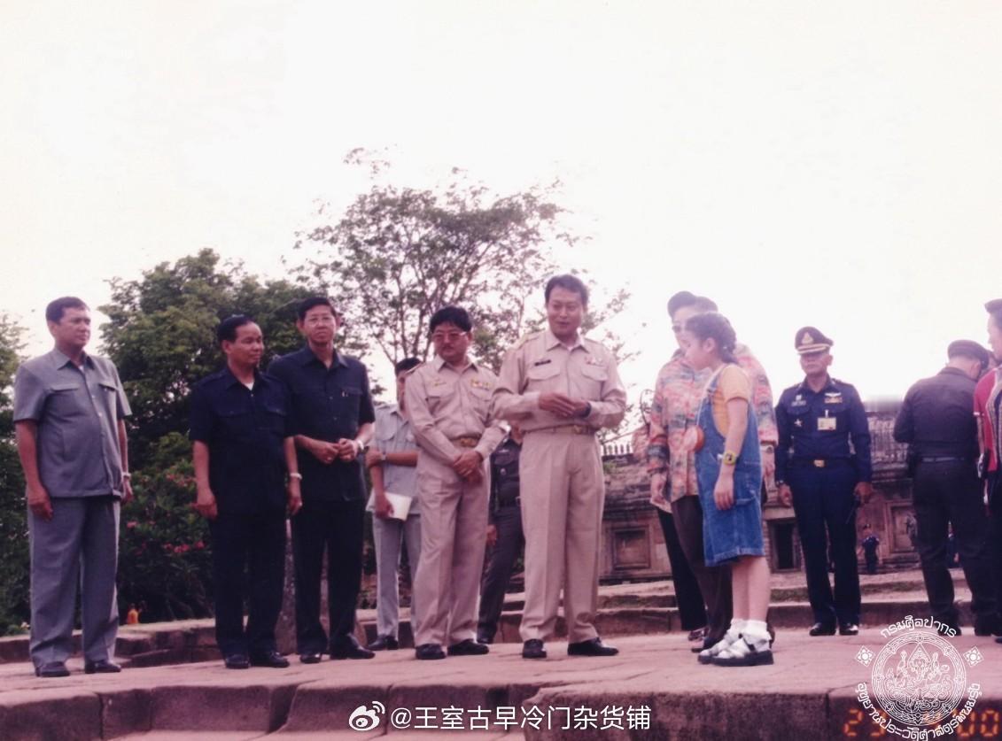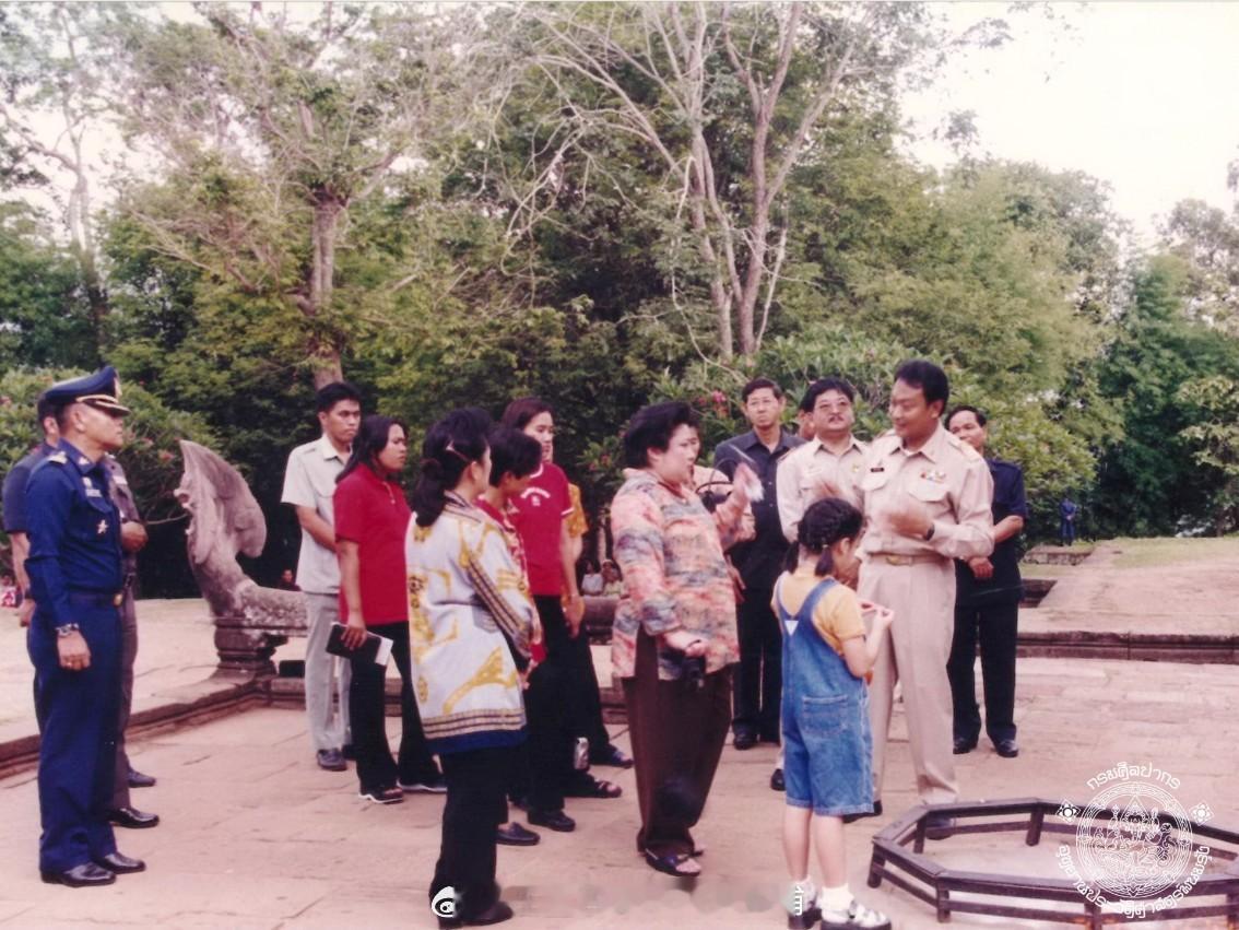 王室王室泰国王室暹罗往事 老照片:2000年4月,颂妃在武里南府参观古迹,还带着一个奇怪的小女孩,这小孩看长相有点儿像颂妃的养女,但是看年龄好像又比养女小一点儿,不知道是谁