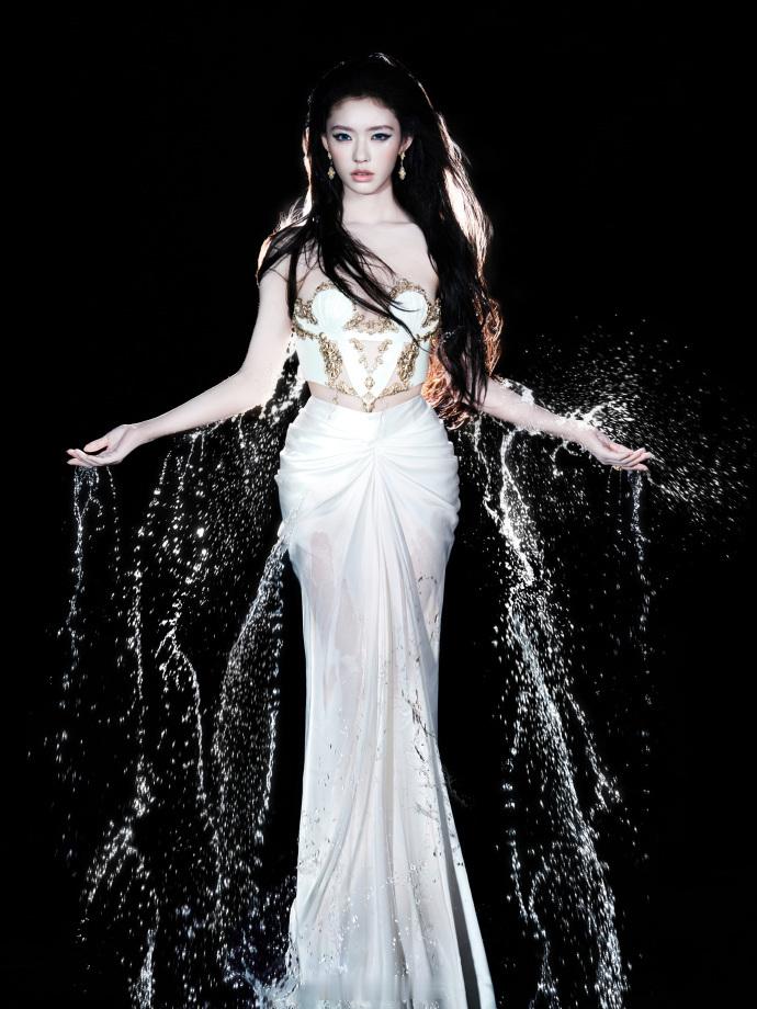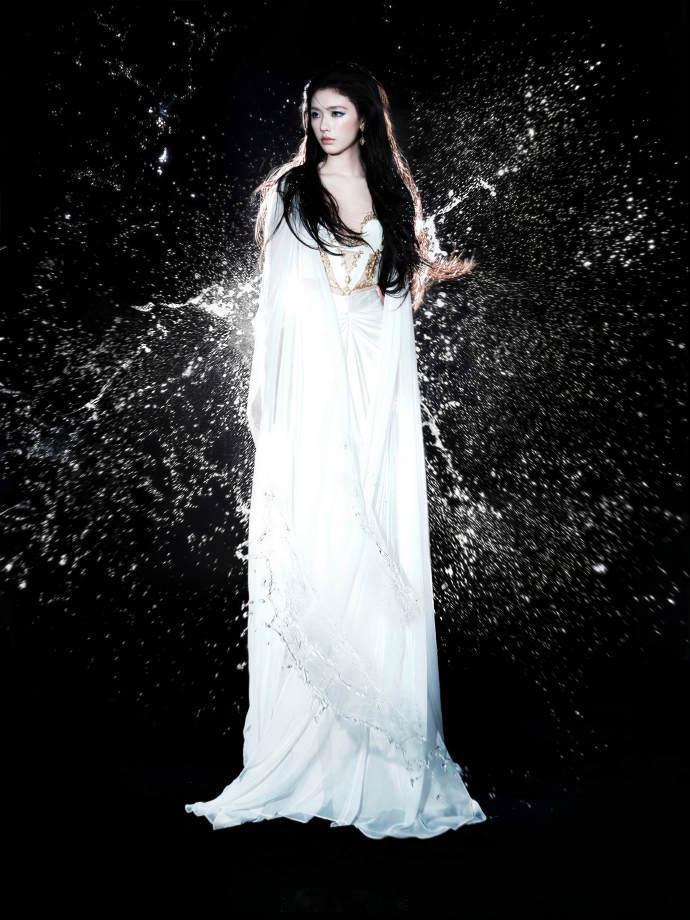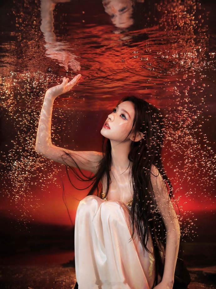白色抹胸裙变身海底神女、清冷感拉满——林允。每日明星美图分享