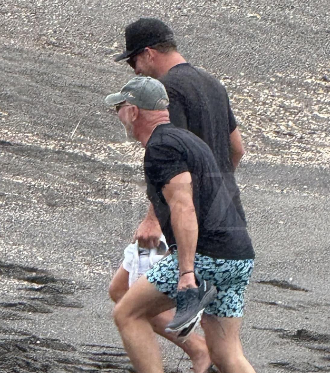 他们一行人都赤着脚踩在沙滩上,手里拎着鞋子……
